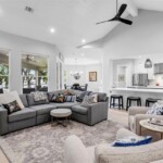 Welcome to your dream waterfront property at 311 River Ranch Road in the charming town of Kingsland. This stunning home boasts overrann acre of beautifully wooded land, complete with majestic pecan trees and 150 feet of water frontage. As you enter the home, you will be greeted by an abundance of natural light and modern finishes, including a cozy fireplace and energy-efficient appliances. The gourmet kitchen is a chef’s delight with double islands, granite countertops, and top-of-the-line stainless steel appliances including 3dishwashers, a double oven & warmer, and a trash compactor. The home also features a temperature-controlled storage room for allyour treasured decorations and items. This property is configured with 3 spacious ensuite bedrooms plus an office and bonus room thatcan easily be converted into additional bedrooms by adding a closet. (Septic is permitted for up to 5 bedrooms). The primary bedroomboasts a massive closet with built-in storage large enough for all your shoes! Enjoy the peaceful surroundings on the screened-in backporch to gather with loved ones in this special outdoor entertainment area. This home also offers a multi-car garage, ample storagespace throughout, and custom-built ins. Located in a gated community on a quiet street, this property offers the perfect combination ofsafety, privacy, and scenic surroundings. Conveniently located near entertainment and recreational activities, this home is perfect forfamilies looking to enjoy lake time in a close in community.
