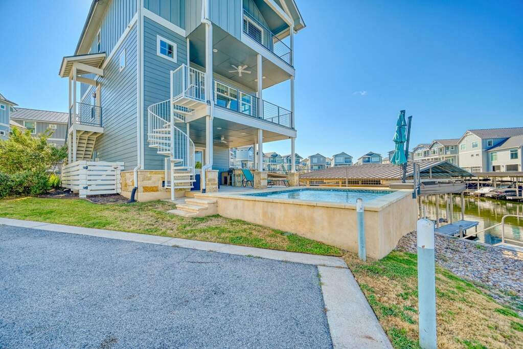 **PRICE IMPROVED TO $1,495,000** Dreaming of a home where every day feels like a vacation? Welcome to 321 Island Circle at Clearwater Harbor, located on open water inside the gated community of the Legends on Lake LBJ. Your slice of paradise, perfectly perched, with panoramic views of Lake LBJ. This standout and premium location in Clearwater Harbor is on the “peninsula point”—Swim, grill & chill in poolside privacy…where you can’t see the neighbors and they can’t see you! Featuring 3 gracefully appointed bedrooms and 3 and 1/2 baths with elevator to all floors, this luxury retreat ensures comfort and modern style. With a newly painted exterior, new interior faucets, this home is a well-maintained gem. The in-Home stereo system features speakers in the living, kitchen, dining, master bedroom, the sky patio and pool deck level. Step just a few paces, and you’ll arrive at your private boat slip, set up and and fitted for either a pontoon or a wake surf boat. It’s a breeze to slip into the water for an impromptu day on the lake or an evening cruise at sunset. Clearwater Harbor is a very popular short term rental location. A Lake house that helps pay for itself! Adjacent to Clearwater Harbor is the Tom Kite designed Legends Golf Course, one of The Texas Hill Country’s’ most renowned golfing locations. Clearwater Harbor also features an amenity center w/ pickle ball, basketball, and beach volleyball courts. This home is fully furnished with all the essentials for a turnkey ready to use Lake House! .