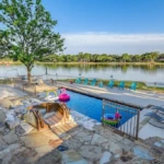 LAKE LBJ OPEN WATERFRONT! 1720 Bluebonnet, with “close in” convenient Kingsland location features 4 bedrooms 2 ½ baths, an open floor plan with multiple living spaces, game room, and one of the best outdoor living arrangements on Lake LBJ. There’s a lot of fun & enjoyment with 2 swimming pools, water slide, outdoor kitchen, multiple patios with plenty of room to entertain large groups of friends and family. It’s a Scenic & Captivating setting with Spectacular views of Lake LBJ, Packsaddle Mountain, and the surrounding Hill country. The property features over 1/2 acre of estate-like landscaped grounds with 105 feet of East facing waterfront, topped off with a new boat dock with 2 slips + an area for Jet Ski’s, and wonderful party patio deck above. Not only is 1720 Bluebonnet a great lake home, it’s an incredible STR opportunity. This property has a seasoned, 5-year proven track record of $150,000 + annual income. (Great VRBO reviews & return renters) This home is being offered fully furnished, transferable VRBO credentials, with housekeeping and lawn care inplace. A lake home that helps pay for itself, it couldn’t get much easier than this!
