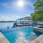 Welcome to 129 Bud Ln, a breathtaking waterfront property nestled in the heart of Kingsland, Texas. This stunning home features 5spacious bedrooms and 4.5 luxurious bathrooms, including two master suites conveniently located on the first floor. As you enter, you’ll be captivated by the high ceilings and oversized windows that flood the home with natural light while offering picturesque views of the water. The gourmet kitchen is equipped with stainless steel appliances, modern finishes, and ample counter space that flows seamlessly into the inviting living area, complete with a cozy fireplace—ideal for gatherings and relaxation. Step outside into your own slice of paradise! The outdoor entertainment area boasts an infinity edge heated pool with a spill-over spa, a fun-filled tunnel waterslide, and a huge party deck with partial shade, perfect for entertaining friends and family while soaking up the sun. For water enthusiasts, this property features a heavy-duty scissor-lift double boat slip with remote control boat covers and a dual jet ski lift, making it easy to enjoy all that the water has to offer. Plus, with Wake Point just a short walk away, you can indulge in delicious burgers and fries after a day of fun on the lake. Lightly used and never rented, this almost new home offers the perfect blend of luxury and comfort, making it an ideal retreat for those seeking a serene lifestyle on the water. Don’t miss out on this exceptional opportunity—schedule your private tour today!