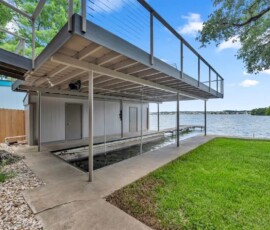 Sophisticated buyers know the value of a protected cove — no pounding 4-foot waves from passing boats, a safe place for kids to swim and play, yet just seconds from the open water. Introducing a rare, fully furnished waterfront masterpiece on Lake LBJ in the heart of Sunrise Beach Village — where refined luxury meets the beauty of the Texas Hill Country. This exceptional new construction offers 3,500 square feet of thoughtfully designed living space with 4 bedrooms and 4.5 baths, crafted for effortless entertaining and elevatedcomfort. Soaring ceilings, expansive windows, and stunning lake views define the open-concept living, dining, and chef’s kitchen, complete with a statement fireplace and walls of glass overlooking the water. The gourmet kitchen features a commercial-grade range, built-in refrigerator, stainless appliances, oversized island, granite countertops, butler’s pantry with secondary refrigerator, and a spacious laundry room. The first-floor owner’s suite is a private waterfront retreat with spa-like bath, dual vanities, soaking tub, oversized walk-in shower, and a custom walk-in closet. Upstairs, three additional bedrooms each offer en-suite baths, providing comfort and privacy for family and guests alike.