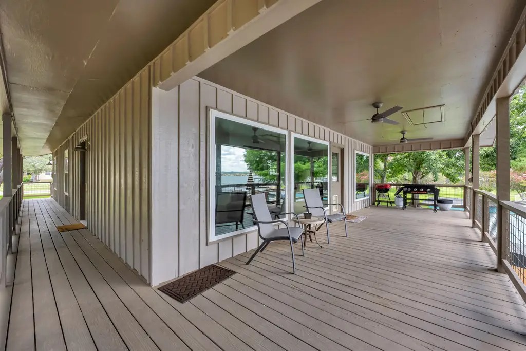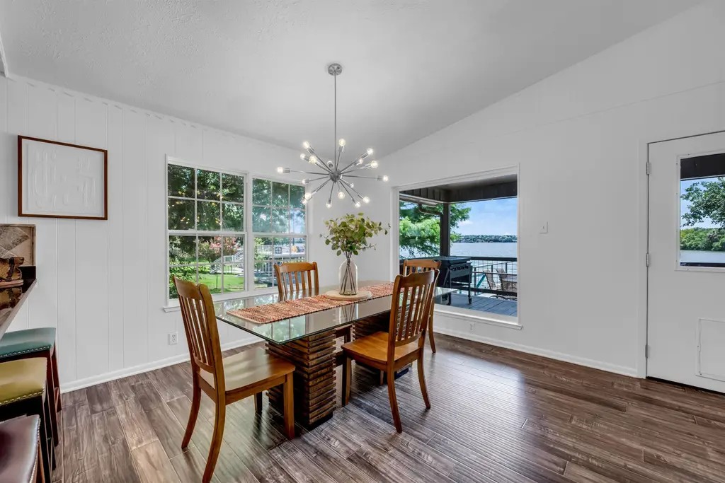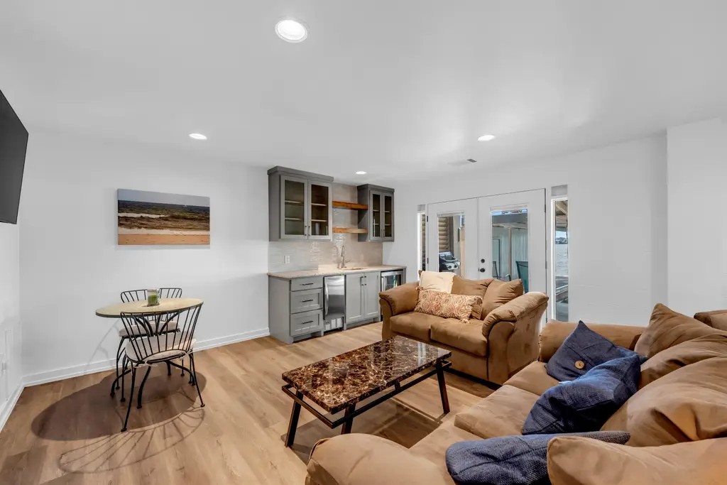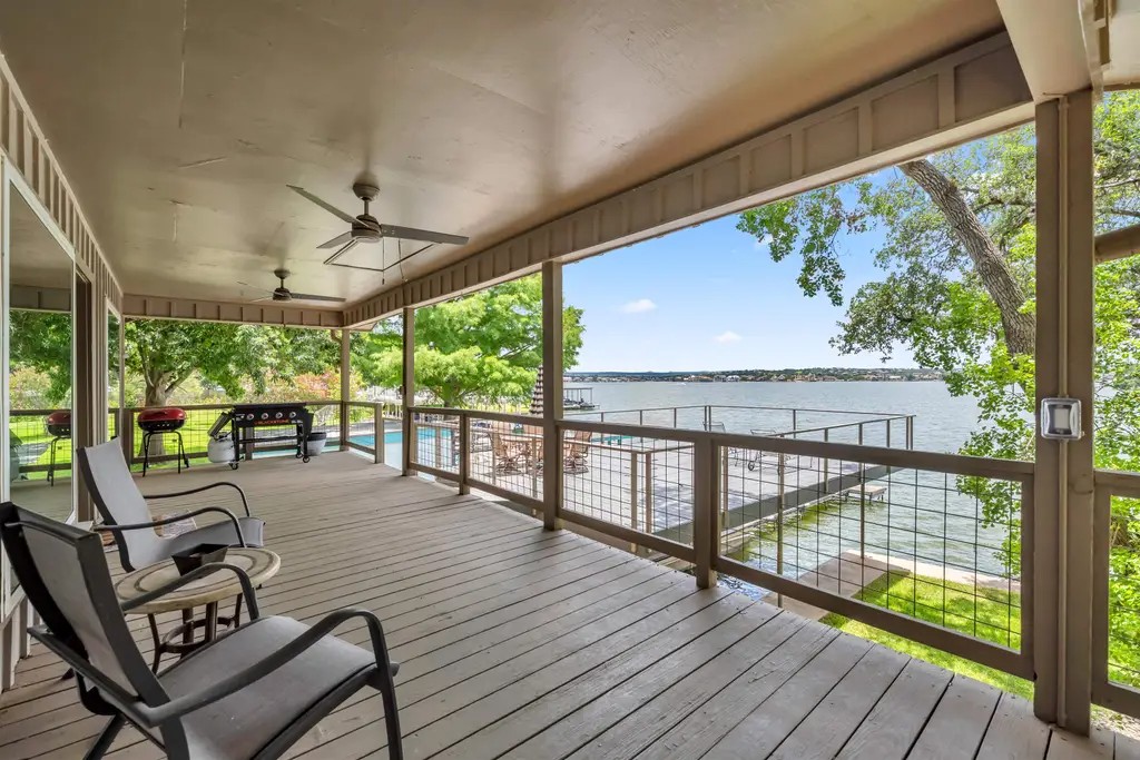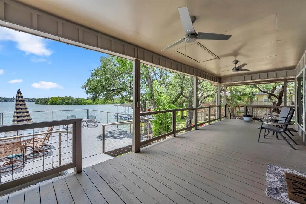 Sophisticated buyers know the value of a protected cove — no pounding 4-foot waves from passing boats, a safe place for kids to swim and play, yet just seconds from the open water. Introducing a rare, fully furnished waterfront masterpiece on Lake LBJ in the heart of Sunrise Beach Village — where refined luxury meets the beauty of the Texas Hill Country. This exceptional new construction offers 3,500 square feet of thoughtfully designed living space with 4 bedrooms and 4.5 baths, crafted for effortless entertaining and elevatedcomfort. Soaring ceilings, expansive windows, and stunning lake views define the open-concept living, dining, and chef’s kitchen, complete with a statement fireplace and walls of glass overlooking the water. The gourmet kitchen features a commercial-grade range, built-in refrigerator, stainless appliances, oversized island, granite countertops, butler’s pantry with secondary refrigerator, and a spacious laundry room. The first-floor owner’s suite is a private waterfront retreat with spa-like bath, dual vanities, soaking tub, oversized walk-in shower, and a custom walk-in closet. Upstairs, three additional bedrooms each offer en-suite baths, providing comfort and privacy for family and guests alike.
