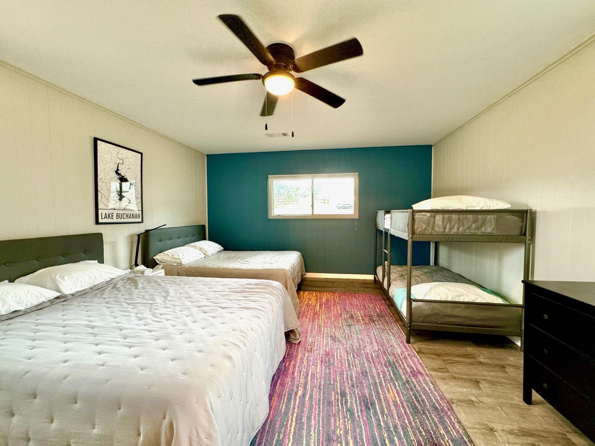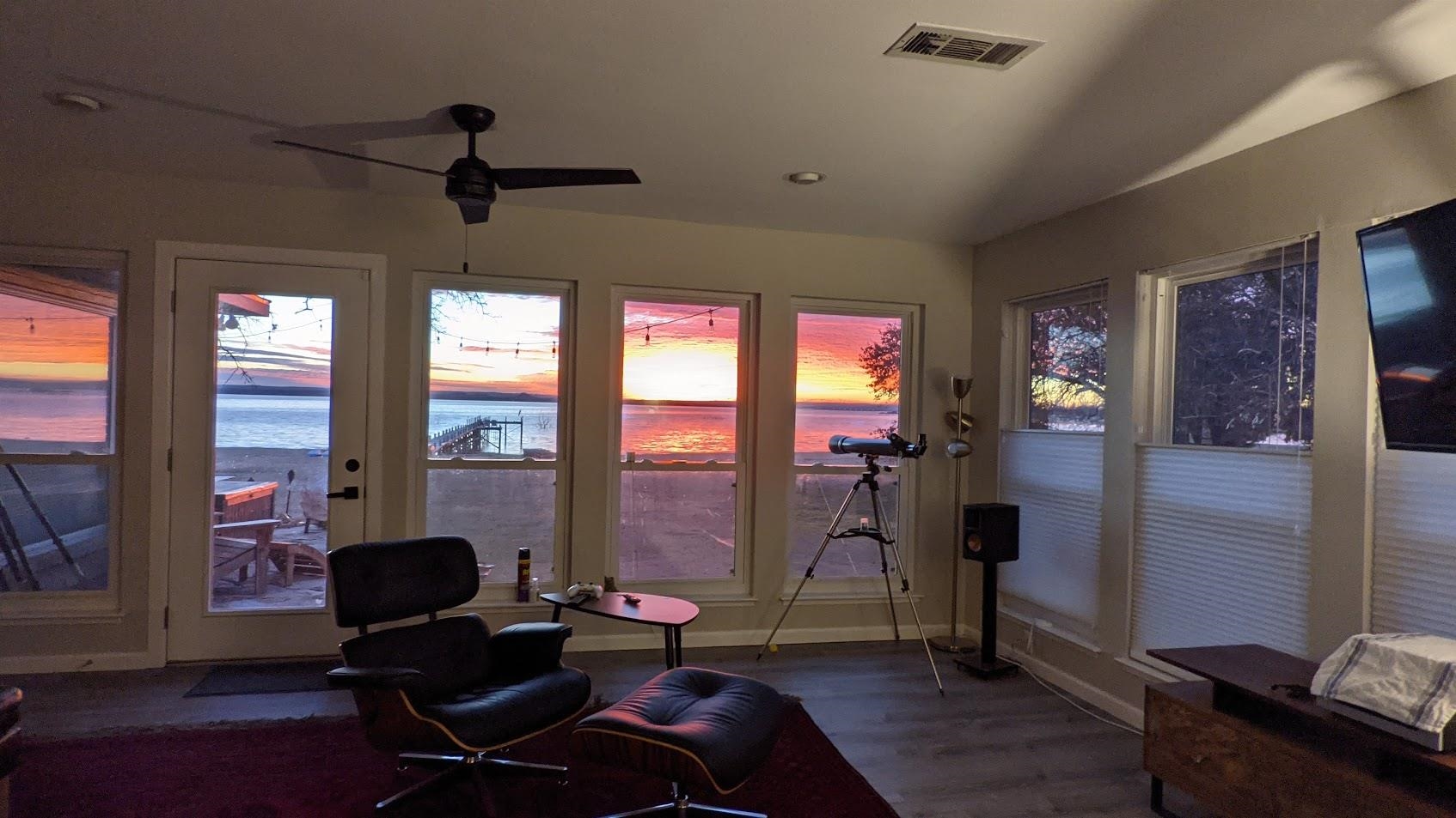 BREATHTAKING sunrises from this incredible Lake Buchanan home! This home is perfect for a large family, boosting two oversized living areas, a dedicated dining space, 3 bedrooms, 3 full baths, and a mud room area. The kitchen features granite countertops with stainless steel appliances, and a butler's pantry/storage room. Off the entry you will enjoy relaxing by the fireplace in the comfortable, spacious den area. The lakeside secondary living area offers incredible sunrise views, overlooking the deep back yard and stunning Lake Buchanan. The primary bedroom has an en-suite bath and walk-in closet with a picture window facing towards the lake. Bedroom #2 also offers its own private full bathroom with a stand-up shower. Off the side of the house is the mudroom area and indoor utilities, with an easily accessible bathroom. Next to the bathroom is bedroom #3 which is large enough for multiple beds! Enjoy dinner on the outdoor patio overlooking the lake or fishing from your own private wooden fishing pier. Apprx. 84' of waterfront with an updated retaining wall. Paved front driveway with a 2 car covered carport. Updated windows, roof, flooring (2019). Additional items to convey with the house include Starlink high speed internet, internet controlled HVAC/outdoor lights, camera system, and Ring alarm system.