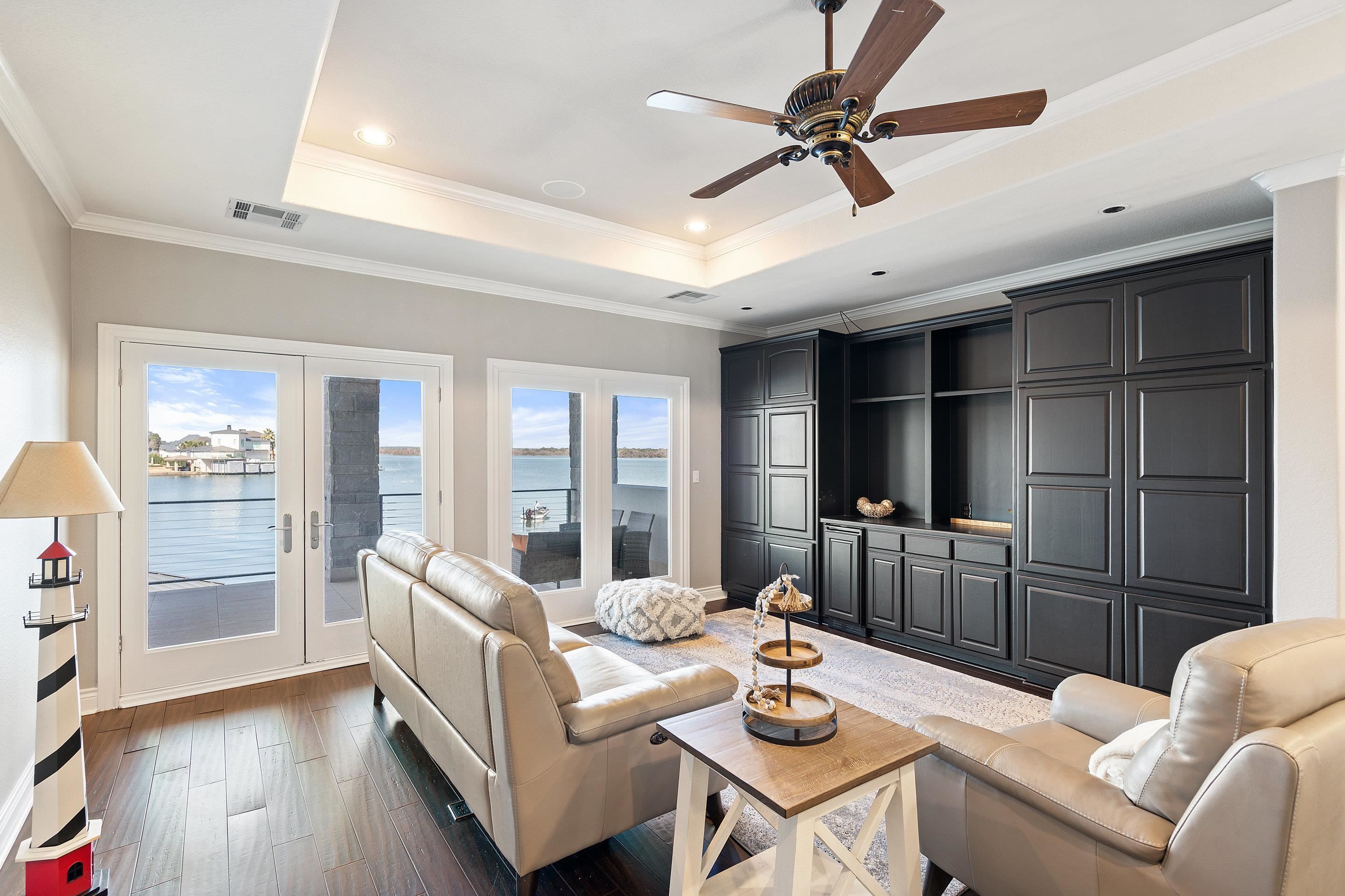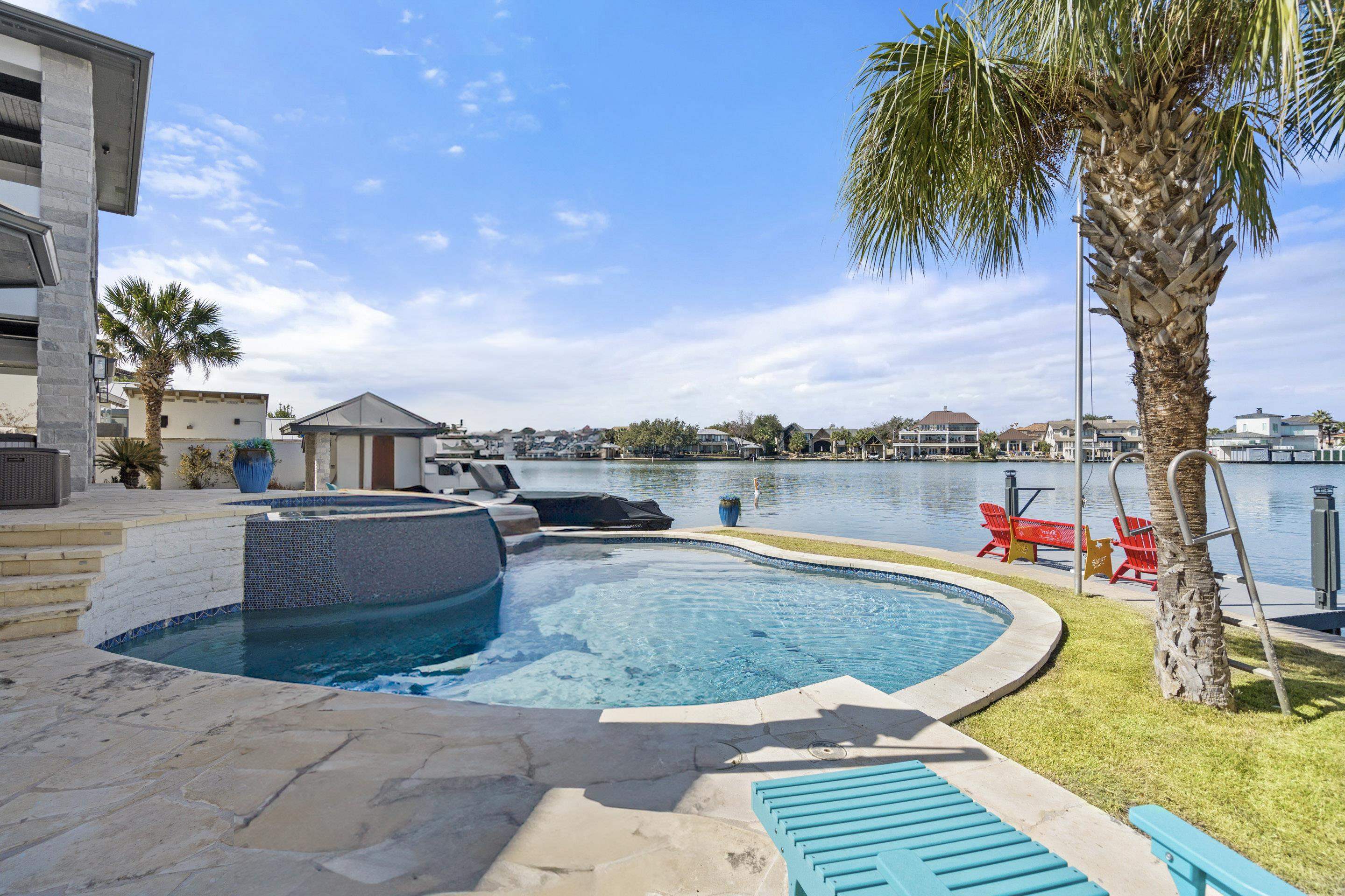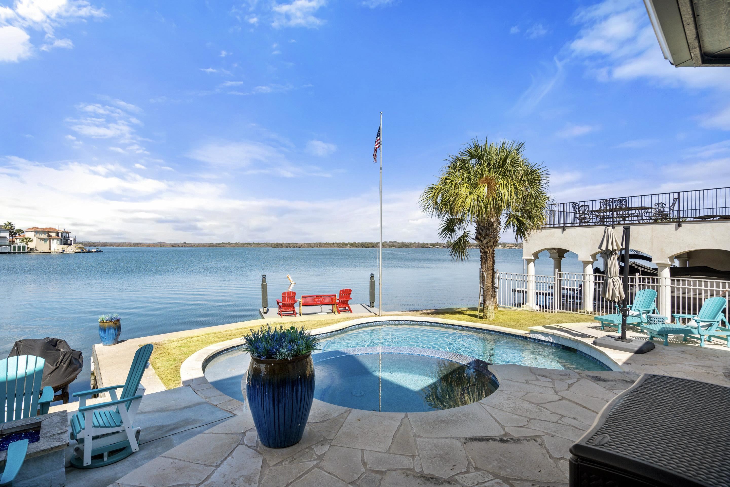 Matern Island isn’t just a place — it’s a lifestyle. This 0.33-acre estate boasts 100 feet of prime Lake LBJ shoreline in one of Horseshoe Bay’s most coveted communities. Start mornings with coffee on the Trex deck and spend afternoons on the water with your private boat slip, electric lift, and 2 jet ski lifts. Prefer dry land? Relax by the in-ground pool, spa, and splash pad, or gather around the stone patio’s gas fireplace for golden-hour views. Built-in speakers keep the vibes flowing, indoors and out. Inside, lakeside luxury takes center stage. The living room’s floor-to-ceiling windows frame panoramic water views, while the stone wood-burning fireplace and built-in audio system set the mood. The kitchen is a chef’s dream with a Z-Line 6-burner gas stovetop, granite island, and wine bar perfect for entertaining. The main-level owner’s suite is a private sanctuary with unobstructed lake views, private patio access, and a spa-inspired bath featuring an oversized soaking tub, walk-in shower, and a custom closet perfect for any wardrobe. Upstairs, guests enjoy lake-view suites and a family room with direct balcony access overlooking the lake — the perfect spot to unwind after a day on the water. With gated community privacy, meticulous landscaping, and smart home features — plus Horseshoe Bay Resort just minutes away — this home delivers the ultimate lake life. Why dream it? Live it. Let’s get you on the water!