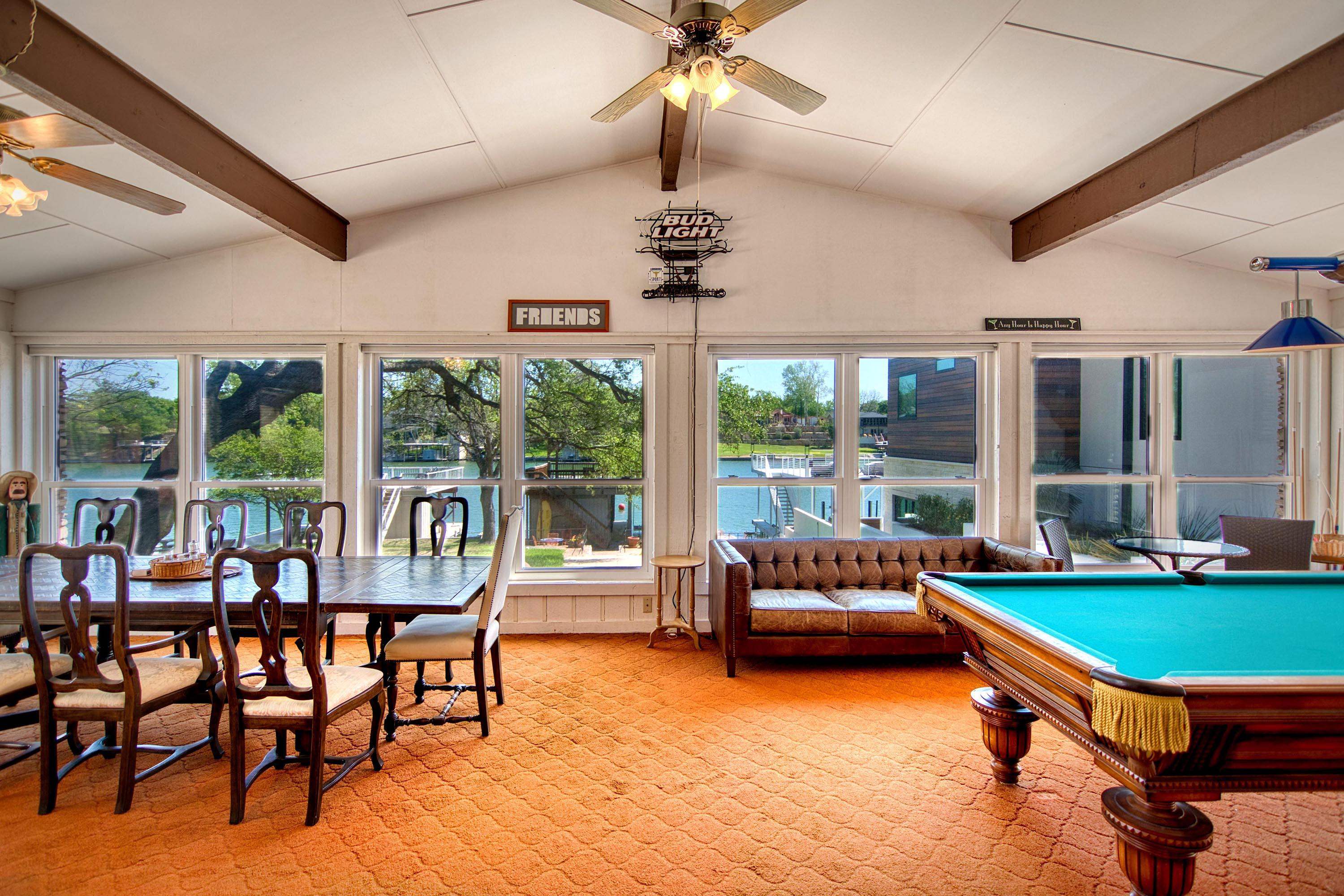 OPEN WATER UPPER COLORADO ARM OF LAKE LBJ! Make this place a SHOW STOPPER residence, weekend lake house or SHORT TERM RENTAL, lots of potential- list price leaves room to update! This 3/2 house in Lakewood Forest III neighborhood features a family room with a fireplace plus a large recreational room with windows overlooking an open water view making it IDEAL for LAKE LIFE entertaining! The shaded grassy backyard leads downward to a dock with 2 covered boat lifts, storage and an upper party deck. Located on the Upper Colorado Arm of Lake LBJ with an East facing water orientation to take in the Hill Country sunrises. By vehicle, approximately a 20 minute drive to Marble Falls, 1hr 20 minute drive to Austin, by boat, minutes from fun on Lake LBJ! Square footage & lot size data source: Llano CAD- Buyer to verify.