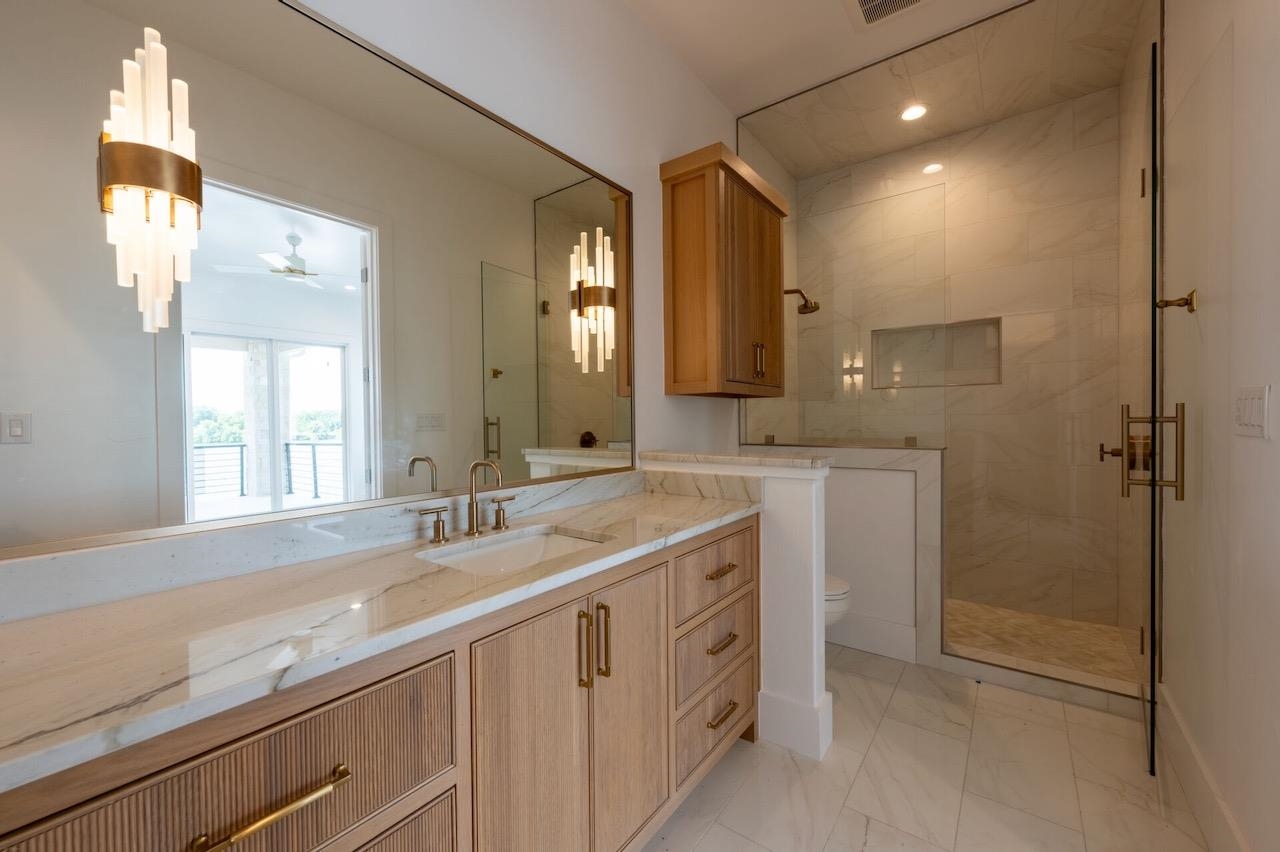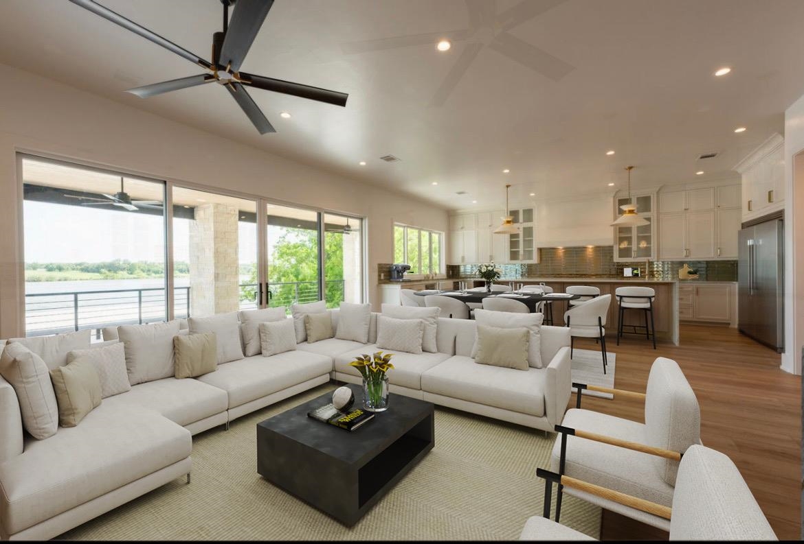 Land at the confluence of 2 rivers was considered sacred by the Native Americans who first settled this location 4 thousand years ago*. At 154 RIVERFRONT DRIVE you to can capture the magic while relaxing on your Lakeside veranda overlooking Lake LBJ and the storied & pristine “Moss Family Ranch". Convenient "close in" Kingsland location, 5 minutes to HEB, & within site of Lake LBJ's premier fun spots, WakePoint, Boat Town & Liberty Island. This is the 1st of 3 Luxury Villas nearing completion on RIVERFRONT DRIVE on LBJ. Inside 154 RIVERFRONT DRIVE there’s enough room for the whole family and friends with over 4500 ft.² of living space featuring 7 bedrooms, (including bunk rooms) and 7 ½ baths. The Swimming Pool Level features a 2nd living area/ game room with big sliding doors that open to a covered porch and outdoor kitchen. There’s over 3000 ft.² of outdoor living space, 2 covered patios, poolside patio, + a party deck atop your private boat dock on Lake LBJ. Special interior finishes include Cali Legends plank flooring, granite & quartzite countertops, schluter brushed nickel fixtures, Kitchen-aid Frigidaire, & LG appliances, Visual Comfort lighting throughout. Large, amenity filled homes on Lake LBJ are very successful short-term rentals, generating $200,000 + annual revenue - spreadsheets available upon request. Enjoy it part time, rent it out part time. A Lake home that helps pay for itself !! *Artifacts on public display at Nightingale Archaeological Center*