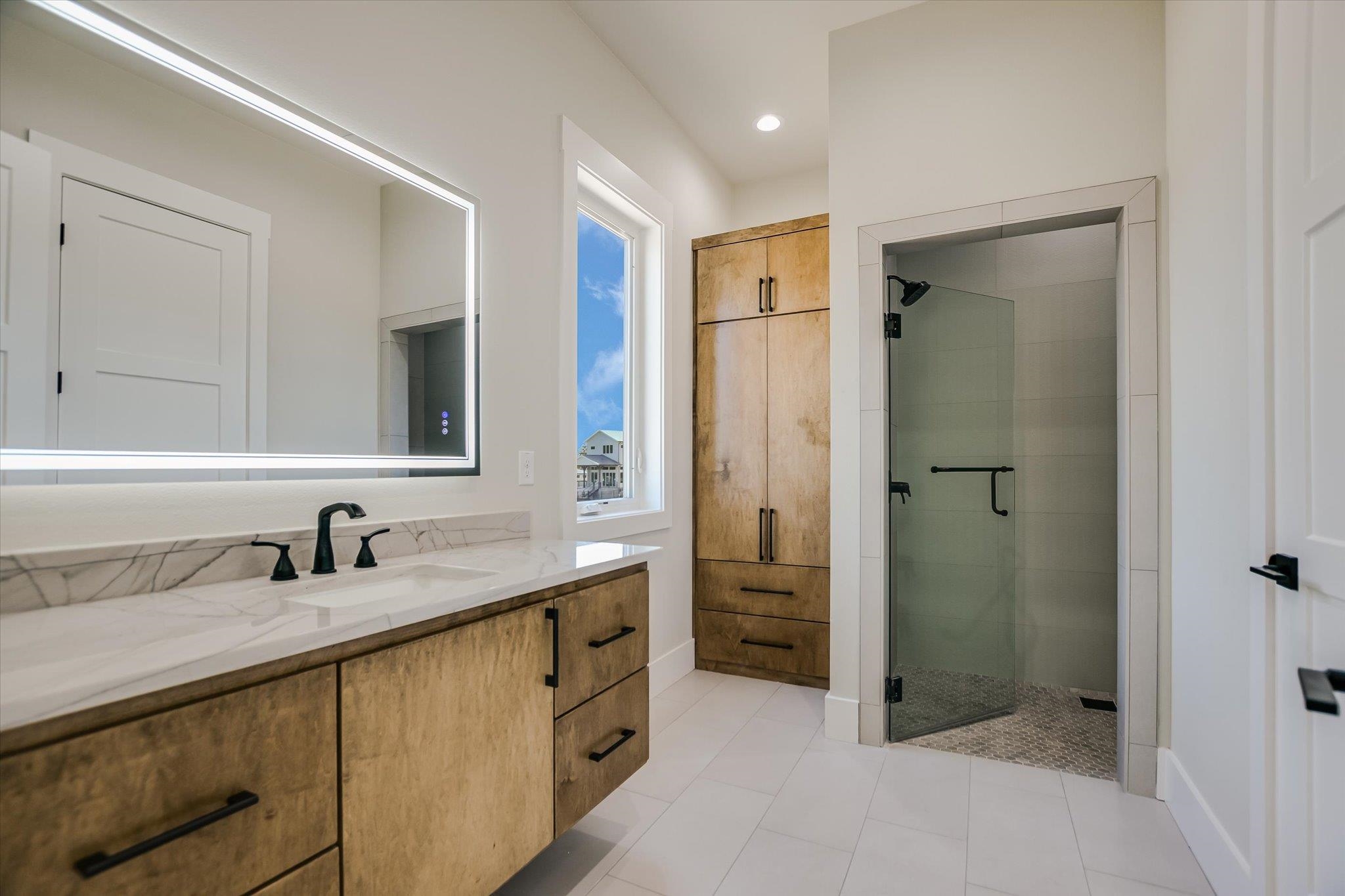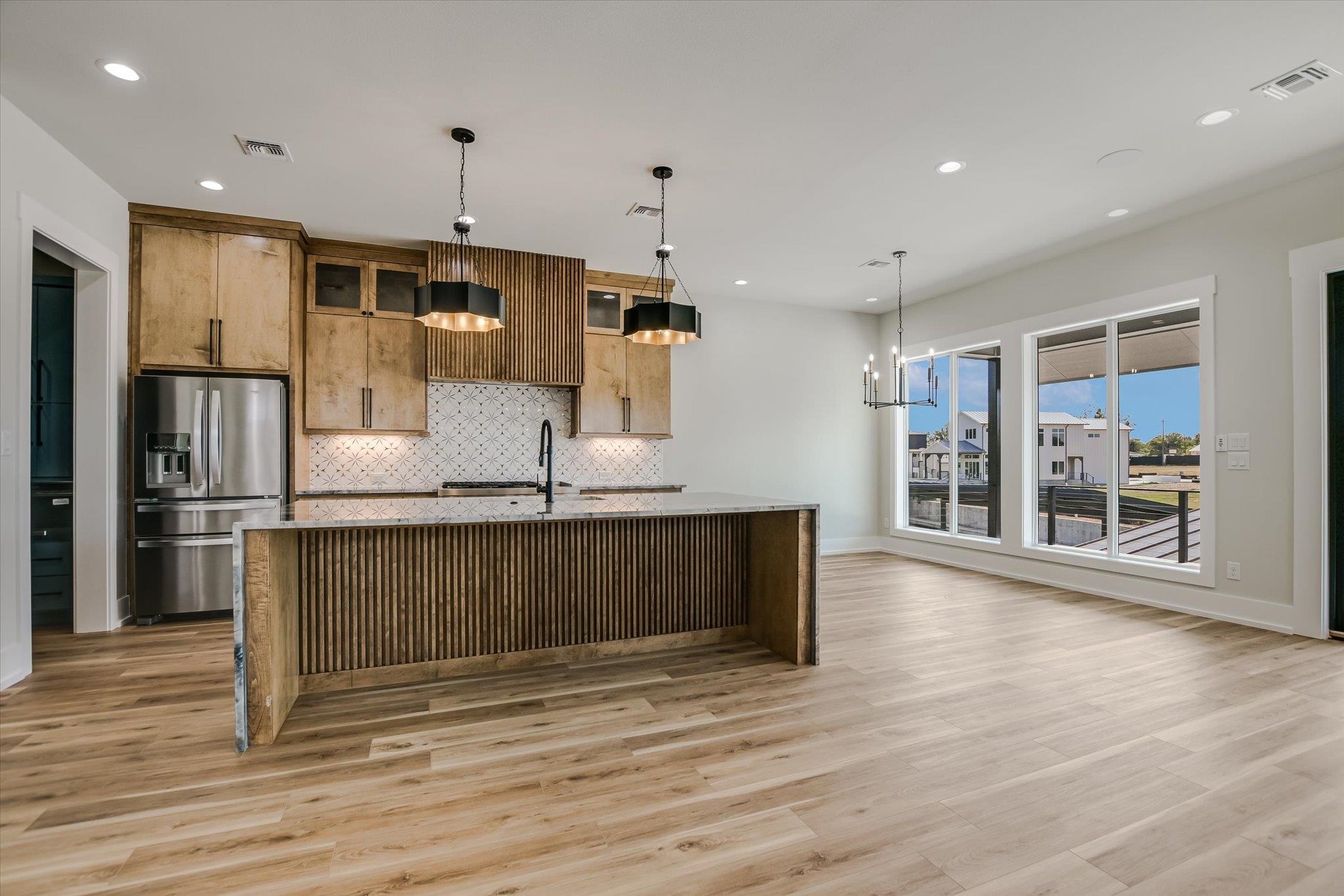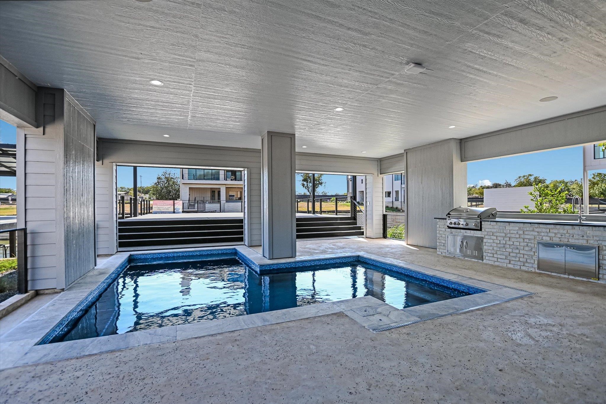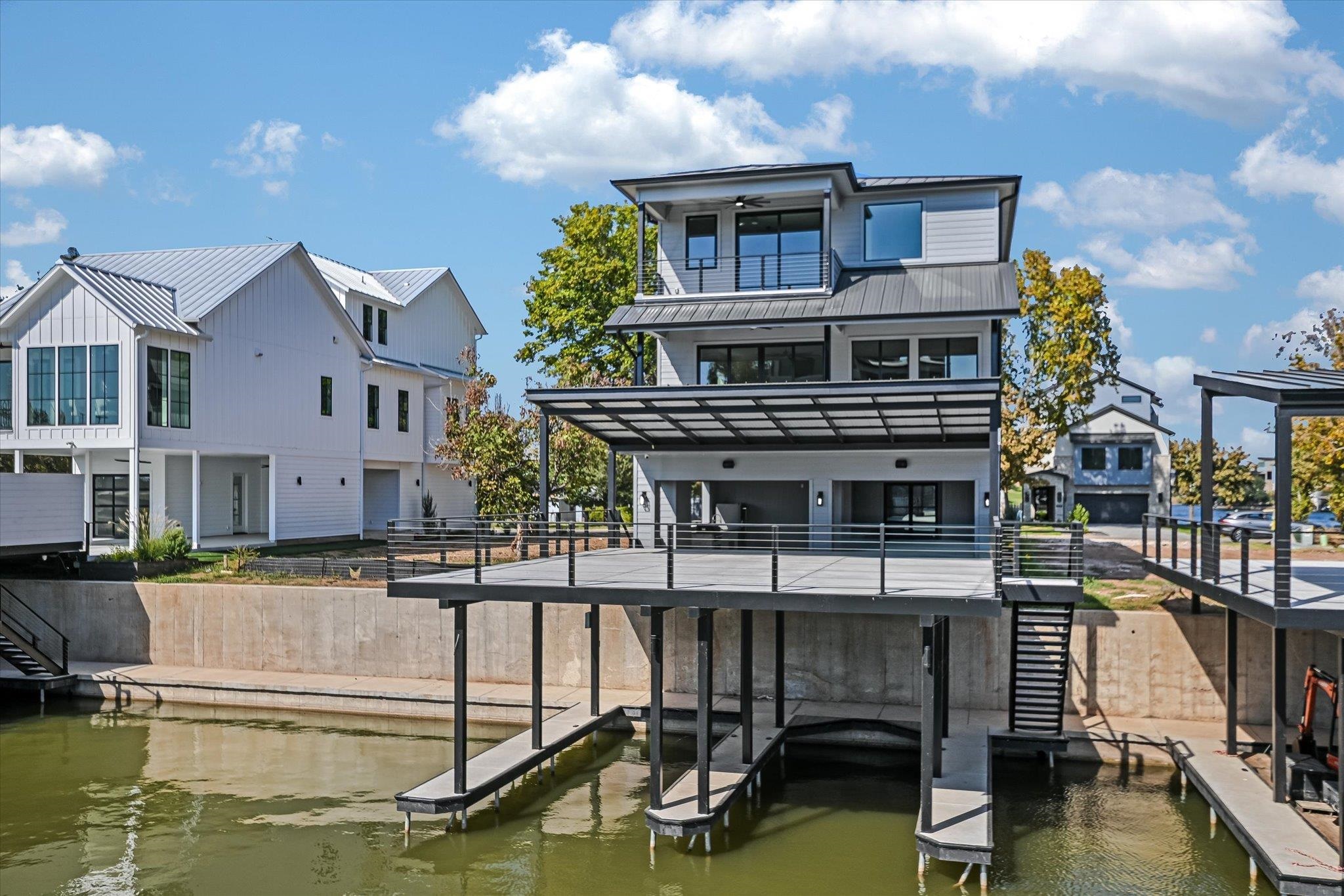 516 Lake Street is a new construction waterfront home in The Drace, Kingsland's new luxury gated waterfront community. Spanning 4,028 sq. ft. with 5 bedrooms and 5.5 bathrooms, the home boasts an elevator, an electric vehicle charging station, and a six-camera security system for peace of mind, whether you are home or away. The main floor showcases an open floor plan that enhances the flow of space throughout the living and dining areas, highlighted by floor-to-ceiling windows and sliding doors that connect the indoor and outdoor environments. This level also includes two guest suites and a wet bar area for entertaining. Upstairs, you'll find the luxurious primary suite, which boasts a private balcony, alongside two additional guest suites and a lounge area with 2 built-in bunk beds and balcony. The private boat dock guarantees access to the lake at your convenience, while the private pool, outdoor kitchen, and multiple outdoor living spaces create the perfect environment for memorable gatherings. The Drace community elevates the experience with outstanding amenities, including a boat launch and extra parking for vehicles and boat trailers, making it an ideal choice for those interested in operating as a short-term rental. Don't miss this chance to claim your slice of paradise in an extraordinary community. Welcome home to 420 Lake St!