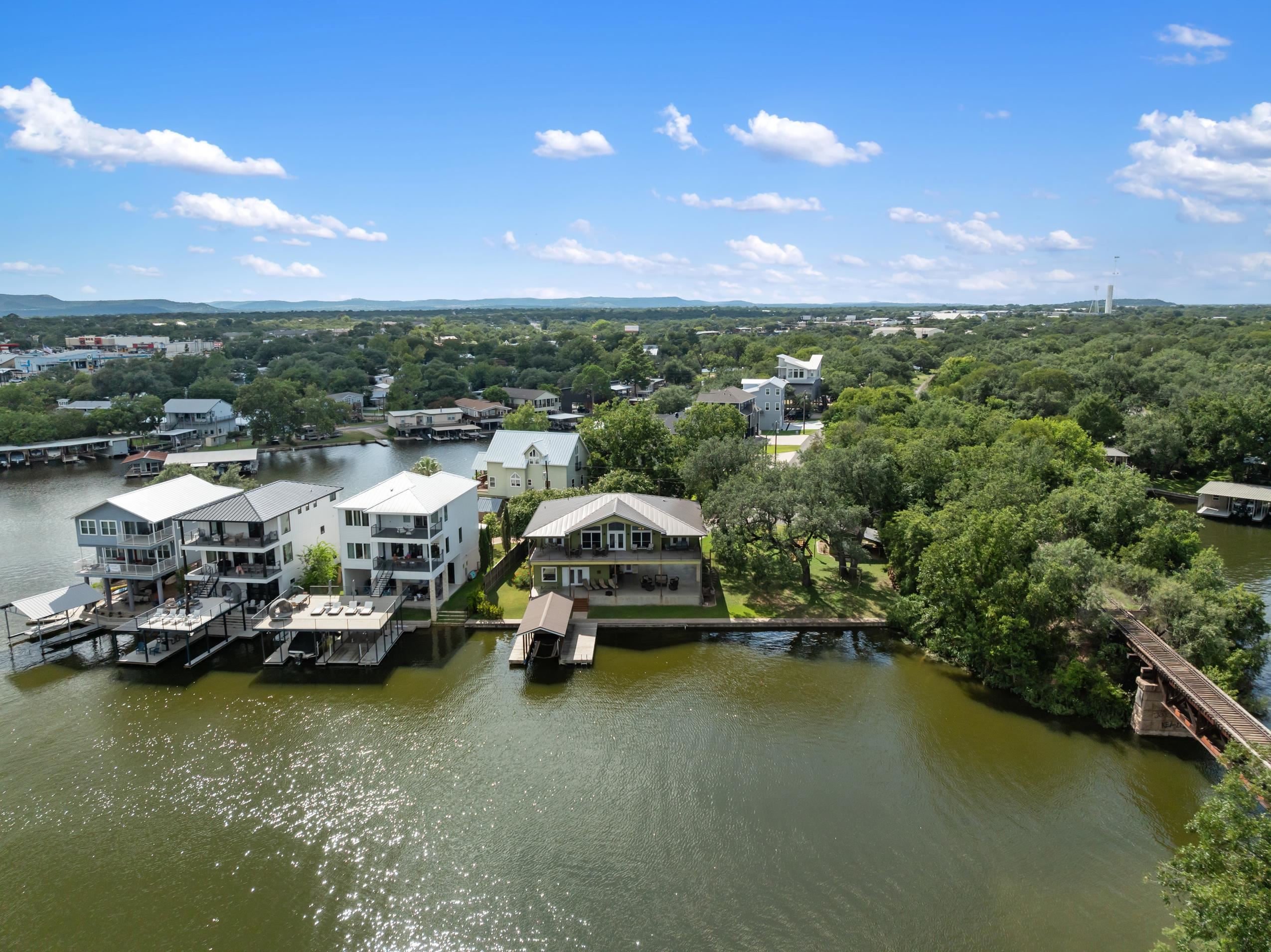 Stunning Lake LBJ Retreat – This gorgeous 5-bed, 3.5-bath east facing lakefront home offers 195 feet of pristine shoreline in a large, peaceful cove—complete with a private boat dock and lift. Enjoy breathtaking sunrises and panoramic lake views from your expansive balcony. Inside, the open-concept family room flows into a galley-style kitchen with a breakfast bar and separate dining area—perfect for entertaining. Nearly floor-to-ceiling windows flood the space with natural light and showcase views of the cove and surrounding Hill Country. The split-bedroom layout ensures privacy, with a spacious primary suite featuring a beautiful ensuite. Two guest rooms are connected by a Jack & Jill bath, ideal for family or visitors. Outside, a detached storage building provides ample room for lake gear and water toys. Whether you're searching for a personal lake retreat or a high-performing short-term rental investment, this home checks every box. Successful STR, waterfront, and made for making memories. “Living the Lakelife” doesn’t get any better than this.