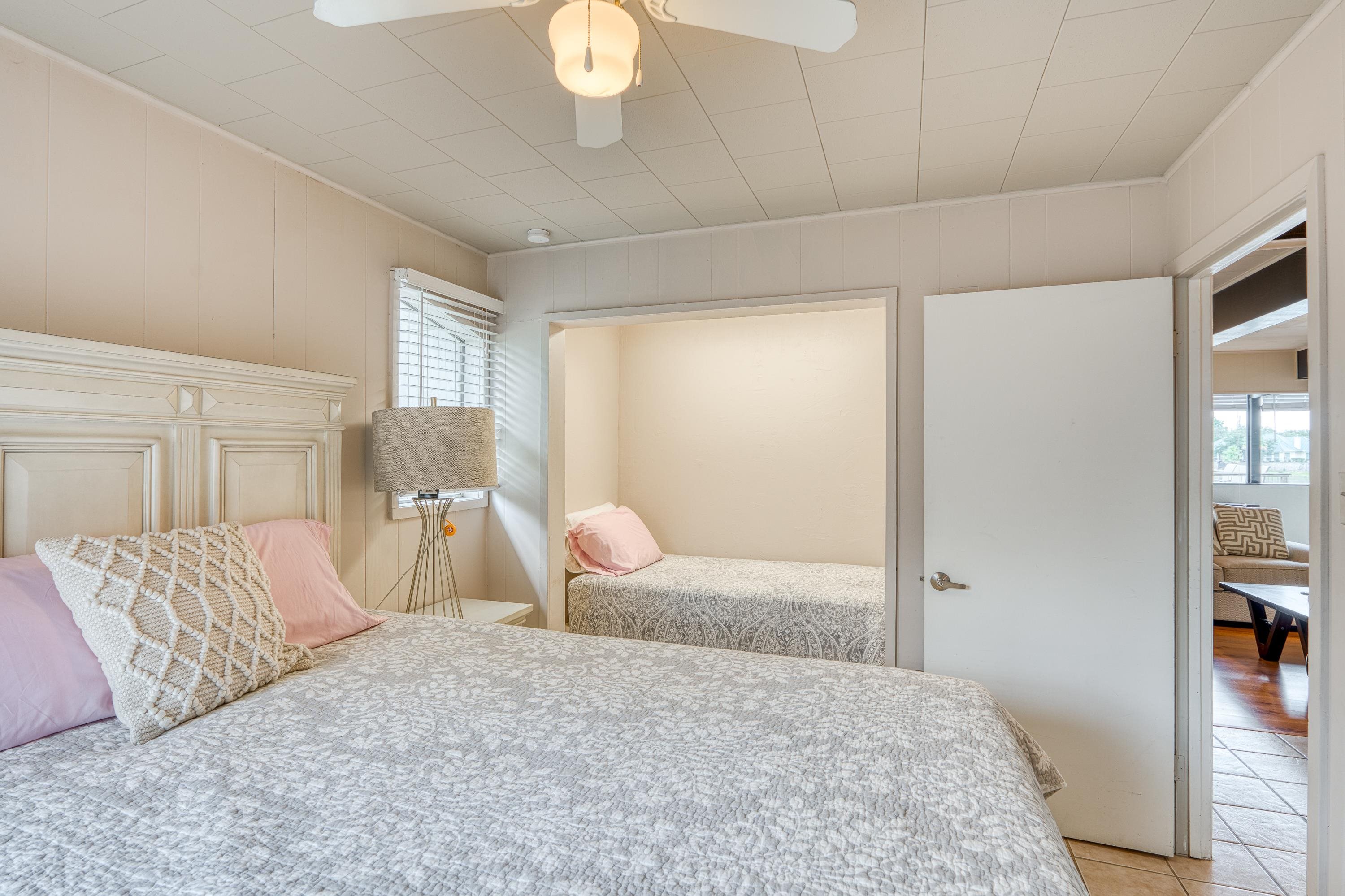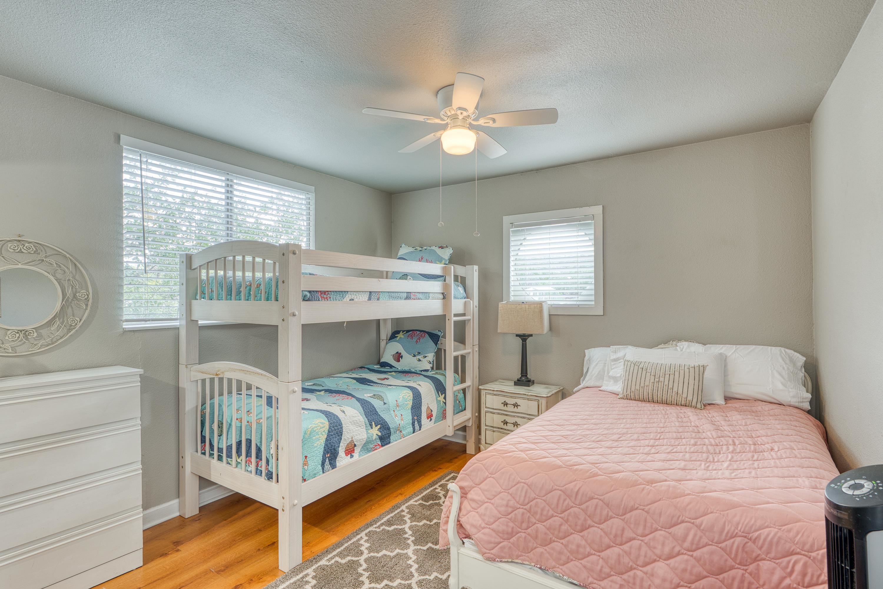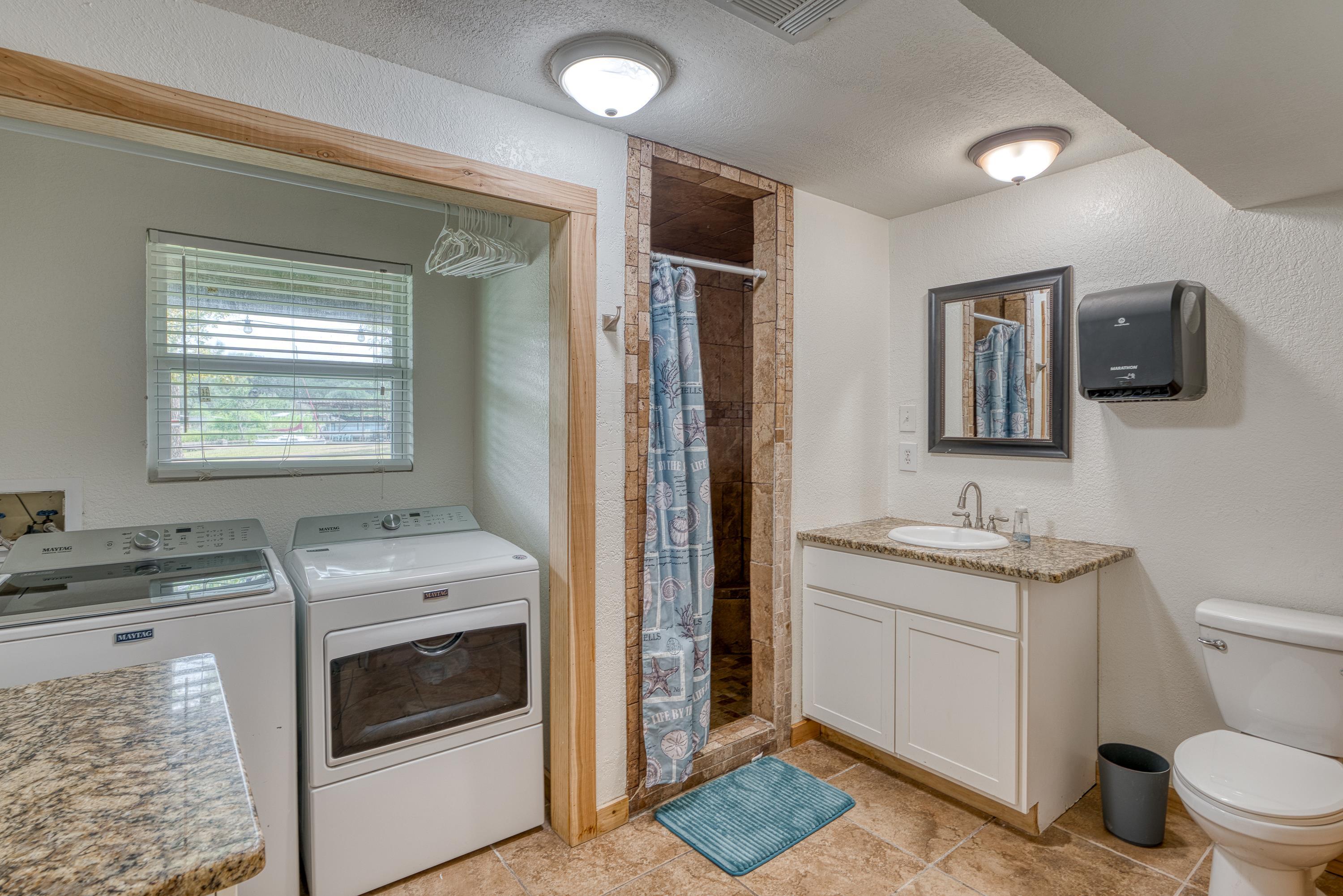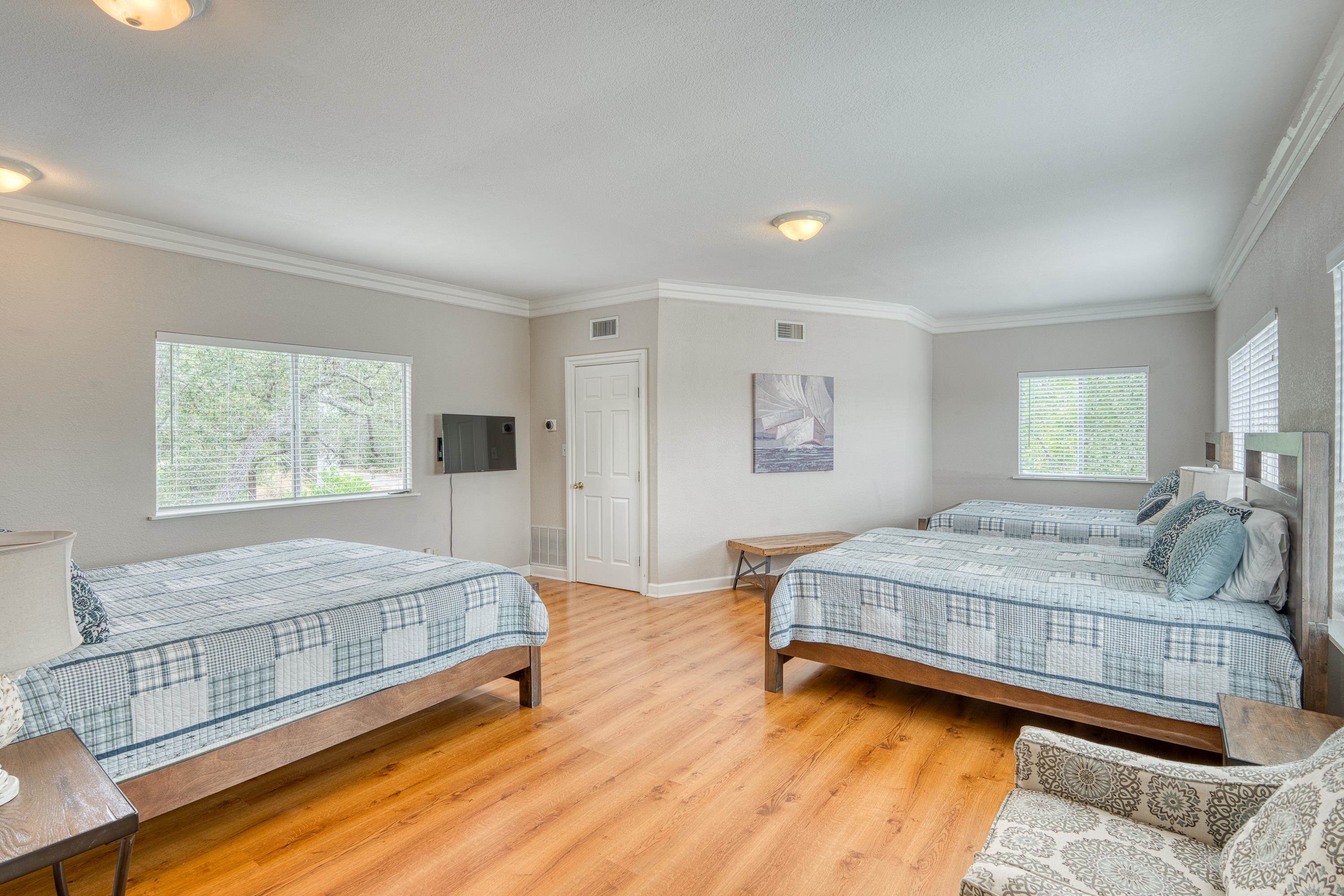 Welcome to this 3-story "tree house" ON the water with 60' of water frontage. TURN-KEY ready for use as a short term rental (STR) or weekend home. This home comes FULLY FURNISHED and is able to sleep 20 people, perfect for large gatherings. This uniquely built home features 5 bedrooms, 3 bathrooms, 2 kitchens, 2 living spaces, and multiple patios. This gated property is near the end of CR 126 and full of beautiful trees creating a private and peaceful park-like setting. The cove has to be one of the best coves on Lake LBJ. Surrounded by clean water, beautiful homes, and Hill Country views for miles. You're able to walk out of the back door and literally jump in the lake! You can't beat the location! 4 miles to Kingsland and 10 miles to Marble Falls, allowing for a quick drive to nearby amenities such as HEB, restaurants, wineries, golfing, hiking, and everything the Hill Country has to offer. Schedule a showing and come enjoy the lake life!