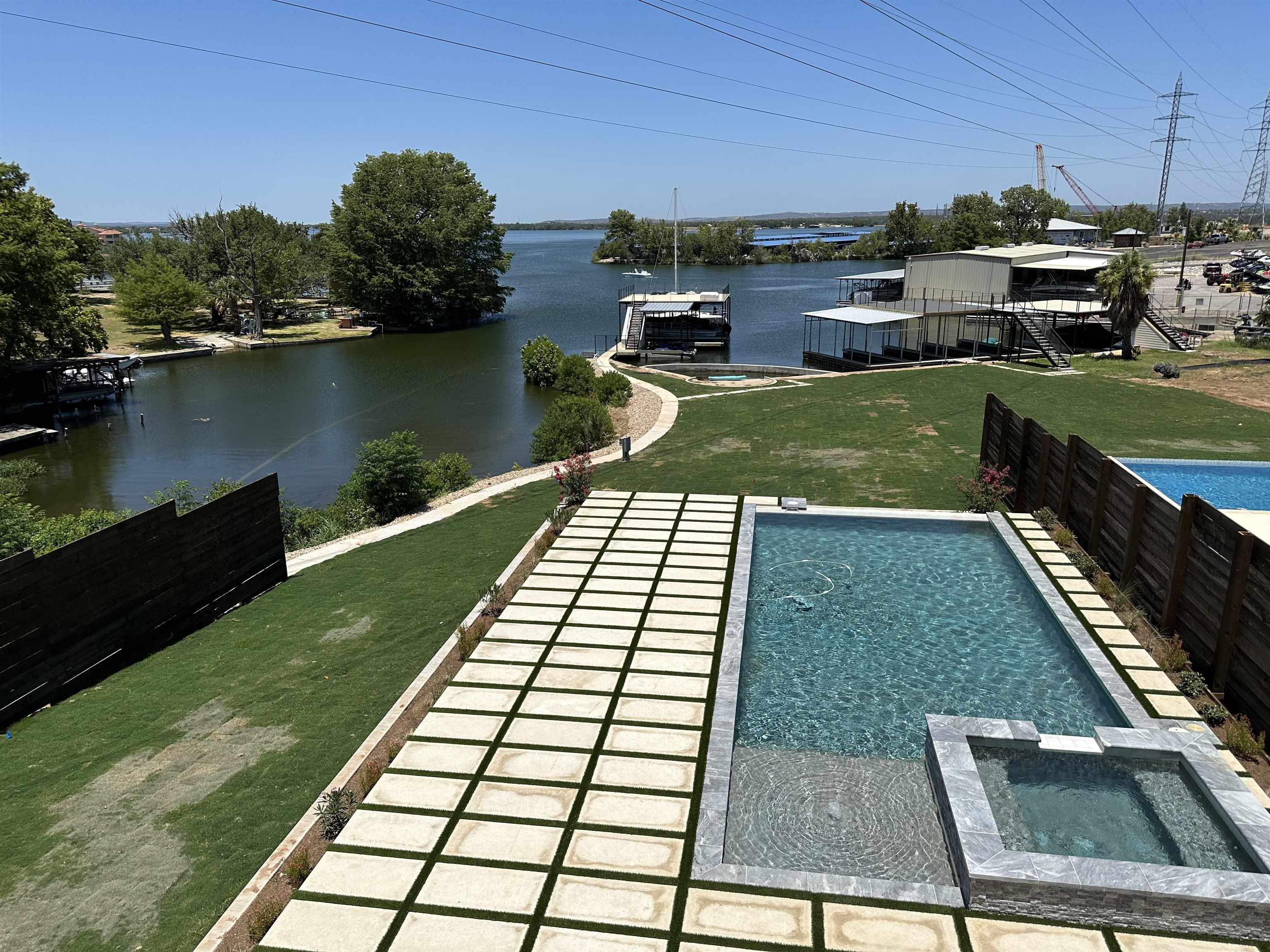 Enjoy lakeside living with this stunning home on Lake LBJ in the gated waterfront community of Captains Cove. Whether you're looking for a private retreat or a lucrative investment, this waterfront beauty delivers. Designed for both comfort and style, this lake house boasts an open living area with floor-to-ceiling windows, gas fireplace, ceramic plank flooring and breathtaking water views. The island kitchen is an entertainer's dream, featuring soft-close cabinetry, granite countertops, dine-in breakfast bar and top-tier appliances, including double ovens and a 6-burner gas cooktop. The spacious main-level primary suite offers a sitting area, dual sinks with quartz countertops, a soaking tub and a beautifully tiled frameless glass shower. A lockable guest suite with a private entrance is perfect for short-term rentals. Upstairs, your visitors will love two well-appointed guest bedrooms, each with its own bath, a secondary living area with theater seating and a covered deck overlooking the pool. Thoughtful upgrades include designer lighting, tankless water heater, automatic blinds, Sonos sound system and more. Outdoor amenities are just as impressive, featuring a covered patio with gas fireplace, built-in grill, pool, hot tub and 200+ ft of NW-facing water frontage. Boaters will appreciate two 27' boat slips. All TVs, electronics and furniture convey with the sale. With short-term rental potential, this property offers a fantastic opportunity to generate income while enjoying the best of lakefront living.