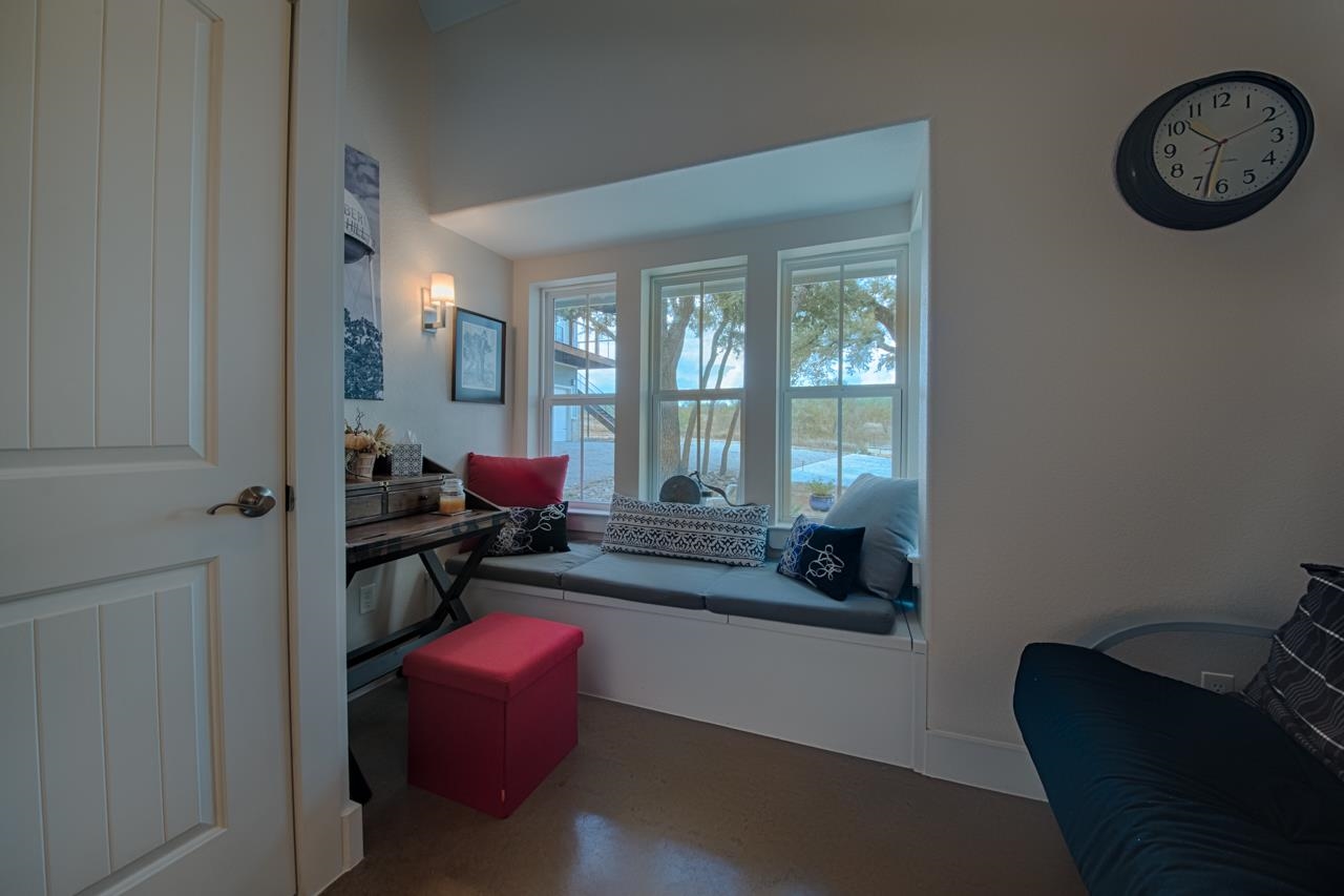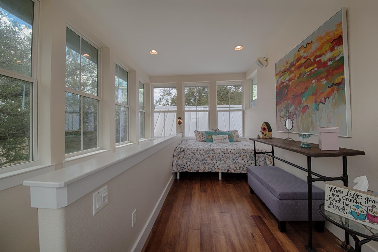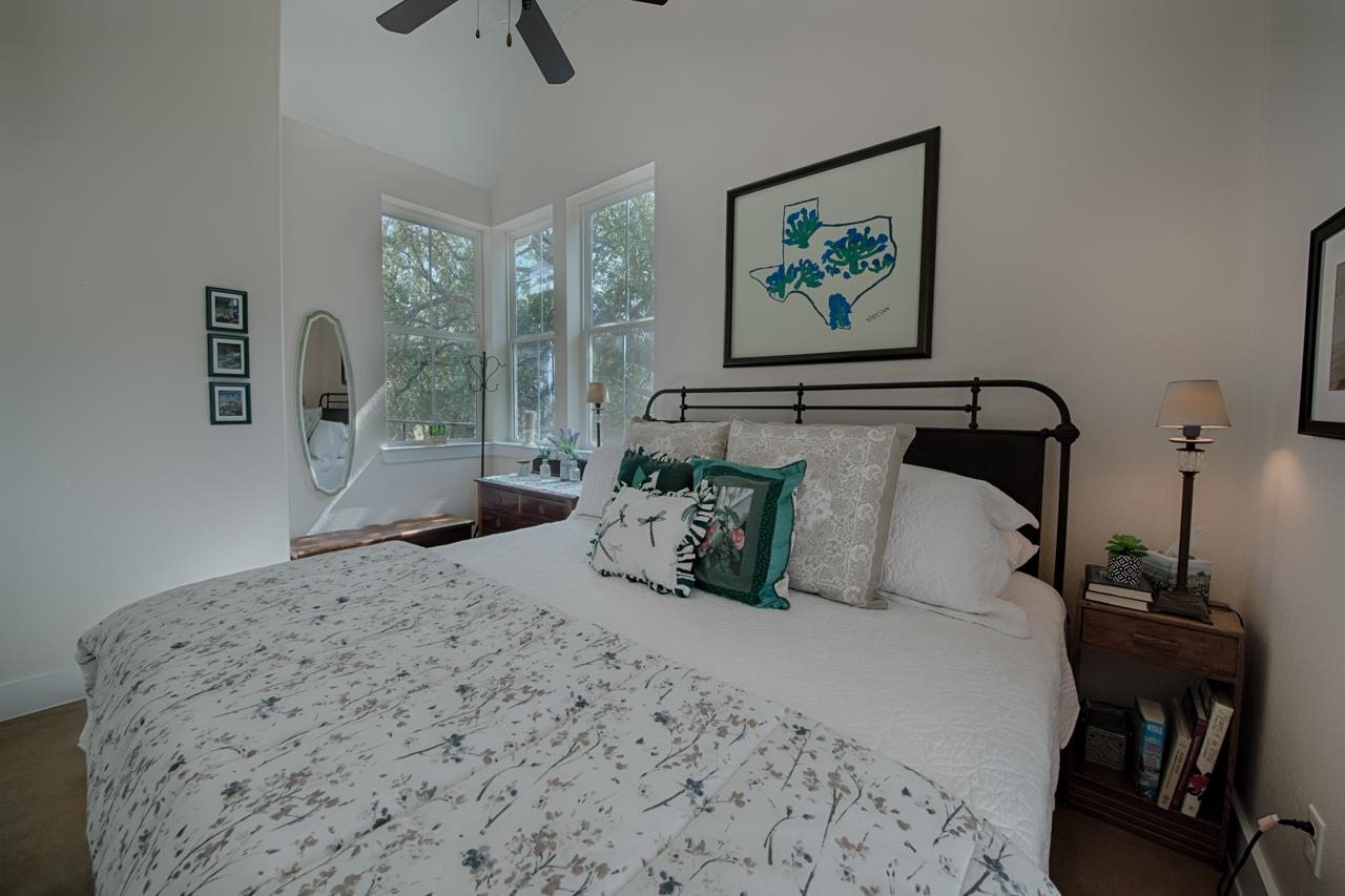 Absolutely charming unique property on Lake Travis in the quiet gated community of Chimney Cove Estates. Just 13 miles East of Marble Falls, this property is capable of comfortably accommodating a group of 16 people, this property consist of seven tree shaded acres with five bedrooms, three full bathrooms and two half bathrooms. The main house consist of the master bedroom with private full bath, two guest bedrooms, full bath in hallway, inside laundry room, full kitchen with stainless steel appliances, gas cooktop, gas fireplace, screened in porch, surround sound and an upstairs loft with panoramic Hill Country views of Lake Travis. The spacious detached three bay garage has high ceilings and a half bath with a two bedroom guest house above. The guest house features a wrap around partially covered deck, a full kitchen, dining space, living area and two bedrooms with a shared hall full bathroom.