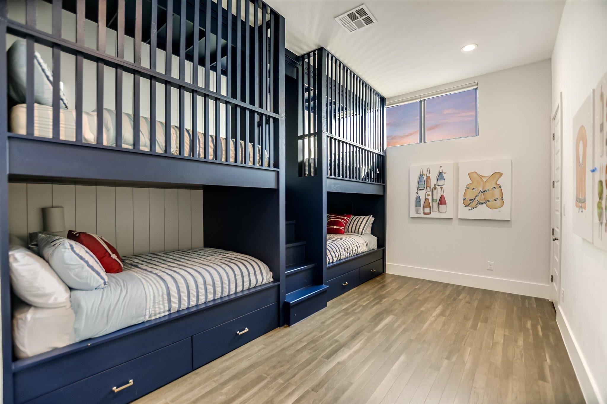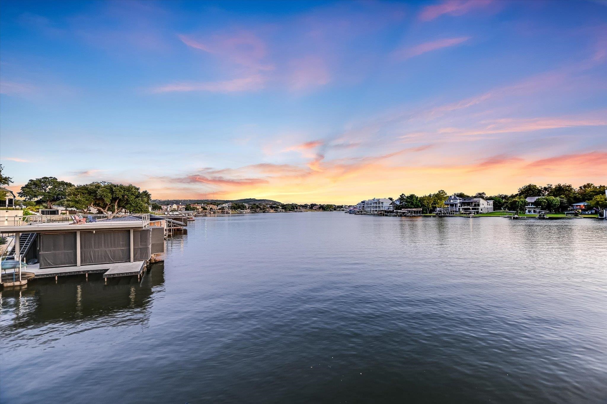 FIRST TIME OFFERED FOR SALE IN HIGHLY DESIRED LEGENDARY ESTATES ON LAKE LBJ. This gorgeous Keith Wing Modern Transitional WATERFRONT custom hm is positioned on the Colorado arm of Lake LBJ & sits high & beautifully on .68 AC w- stunning views of Packsaddle Mtn., Lookout Mtn. & the entire HC as the backdrop to LAKE LBJ. A gorgeous hm & pool w- a gentle sloping backyard feat a Century Oak that shades the pvt beach & fire pit areas down by the massive boat dock. The artfully planned 2-level dock has hydraulic jet ski lifts-platforms for 4 jet skis, kayak spaces, fishing dock, pvt slide into the lake & 2 lg hydraulic boat lifts w- elec boat garage covers. The upstairs deck is designed for entertaining &/or relaxing & enjoying views for days! Completed in late 2020, this 5,054 SQFT hm is open w- a flexible flrpln, lg rms & built for family & friends w-out compromising privacy. The lg metal front door welcomes you into the main LR, DR, Kit & 2nd LR w Wet bar & all rms w- custom black iron windows & collapsible iron doors to the upstairs liv. areas & outdoor kit w- island. Windows have powered shades & smart lighting inside & out. 2 prim stes w- 2 baths on 1st level & upstairs, 3 lg bdrms w- en-ste baths + bunk rm w- 4 built-in bunks & en-suite bath. Rec rm off bunk rm & loft gm rm perfect for play or office -workout rm w- auto black out shades that convert into another 2 bdrm ste. The chef’s kit has a lg pantry & lg laundry & mud rm off 3-car garage w- attached commercial W-D for towels & a golf simulator too!