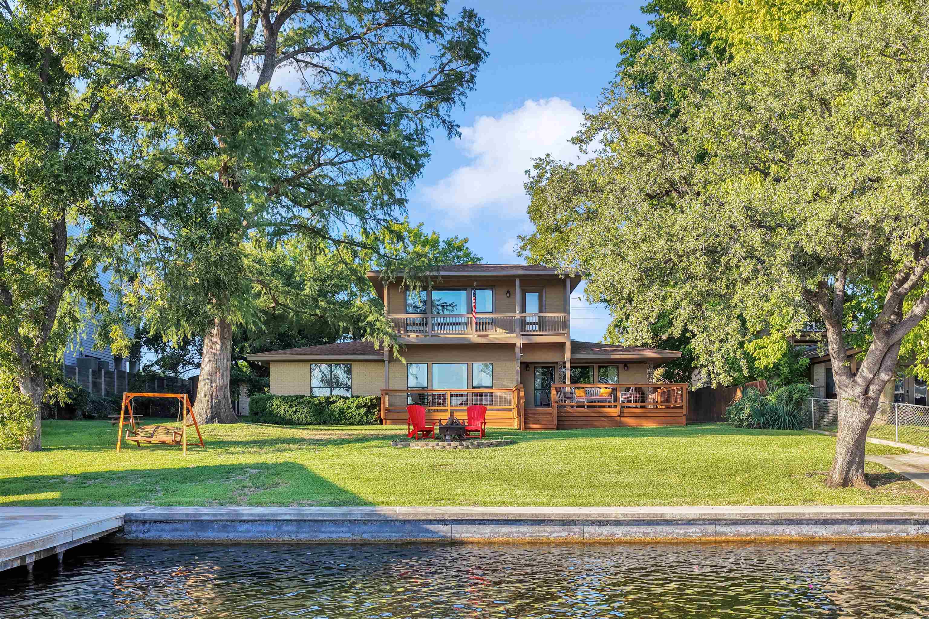 Nestled on 0.54 acres with 103 ft of Lake LBJ Waterfront, 539 Ellen Williams Loop, Kingsland, TX is ready to for its new owners! This Lake LBJ Oasis will have you in a sunshine state of mind all the time. The main house has 4 bedrooms and 3 bathroom. Walking in the front door your eyes can't help but be drawn to all the windows on the back side of the house that show off the beauty of the lake. The open concept layout of down stairs is perfect for entertaining. The Kitchen has a large bar, white appliances, recessed lighting, and a pantry. On the first floor is the Master suit that boast views of the backyard and Lake LBJ, large walk-in closet, and bathroom with walk-in shower. Upstairs there are 2 more bedrooms & 1 bathroom. 1 of the bedrooms has access to the balcony, where you can retreat to and relax with a book while enjoying the vibes that Lake LBJ raditates. Outside on the street side of the house is a separate guest house that has a kitchenette, bathroom, and sleeping area. The real star of the show is the backyard that has views 180 view of Lake LBJ. Enjoys sitting on the partially covered deck, by the fire pit, or even on your own personal boat dock. There is also a 2nd storage shed in the front yard. The sprinkler system keeps the carpet grass green, and there is amazing shade coverage from the trees. Short Term Rentals are allowed & this house has the space! Are you ready to play, relax, entertain, and live the Lake Life?