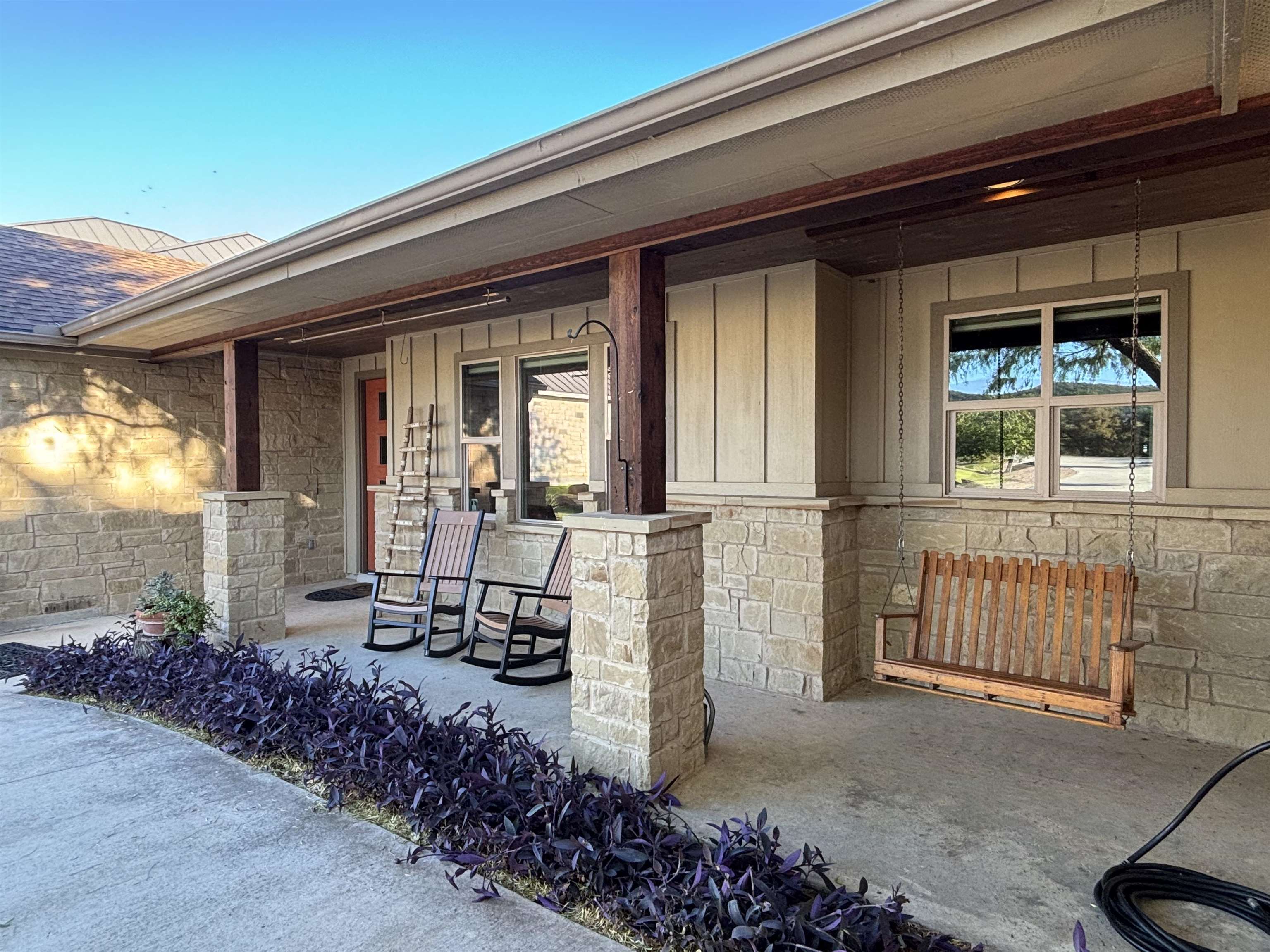 Located in the hidden, gated community of Sendera Ridge, this is the one Lake LBJ property that you can't afford to miss! With attention to detail obvious from the moment you arrive, this 1+ acre oversized lakeside oasis boasts 115 feet of E facing open waterfront and combines expansive, gently sloped Zoysia turf areas with thoughtfully xeriscaped habitats boasting unique flora. Inside, the designer touches surround you, including tiled and hardwood flooring, Hunter Douglas/Top down/Bottom up window coverings, and tasteful furnishings that can be negotiated as part of the sale for those looking for a true 'ready to move in' experience. Each of the 4 BR's has its own private full bath, and 2 of the guest BR's can be configured as a suite with separate entrances. The beautiful master suite has breathtaking lake views, and an expansive walk-in closet drenched in natural light from a large window. A corner tub is bathed in natural light and there is a large walk-in shower as well in the MB. The game/media room has its own wet bar and refrigerator along with a tap for your fave beverage and barn doors for privacy when desired. Lakeside, the 2 slip boat house has room for all of your lake toys plus a large party deck above. This represents an exceptional opportunity, so call for your viewing appointment today!