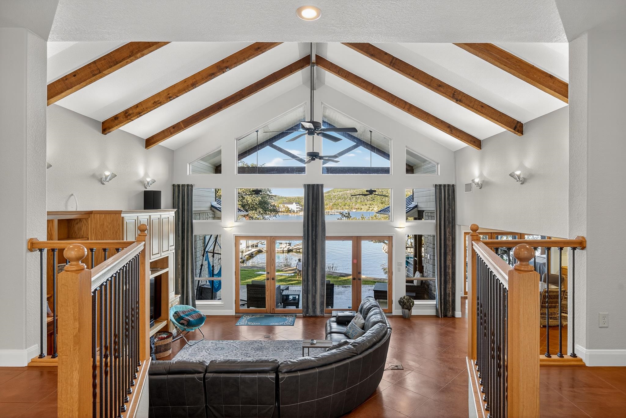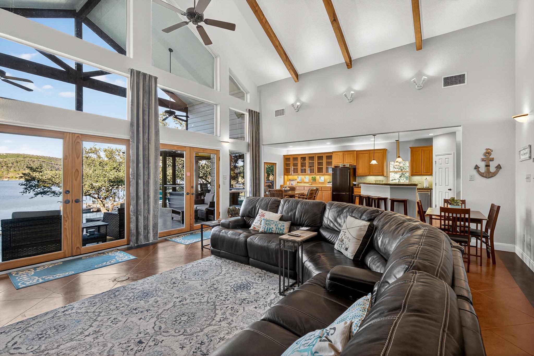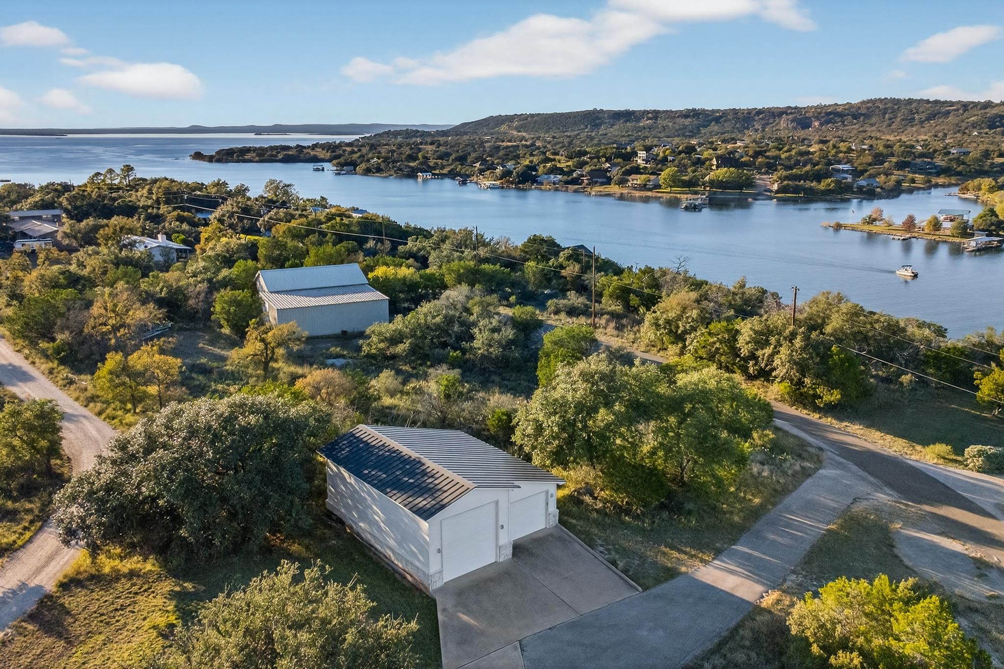 Experience lakeside living on the peaceful northeast side of Lake Buchanan. This property features 100 feet of deep, northeast-facing cove waterfront, offering beautiful Hill Country views while remaining sheltered from main-lake noise and waves. Even during recent drought conditions, the water off the dock was approximately 12 feet deep, providing reliable access and usability. The home has been pre-inspected and is serviced by a well and septic system. Enjoy lake breezes from the spacious patio, positioned above the flood elevation for added peace of mind. A large metal floating dock provides direct access to the water, and a detached garage across the street with oversized doors is ideal for boat or RV storage. Located just minutes from Burnet grocery stores and historic Main Street, this waterfront retreat combines privacy, convenience, and recreation in one of the Highland Lakes’ most scenic settings.