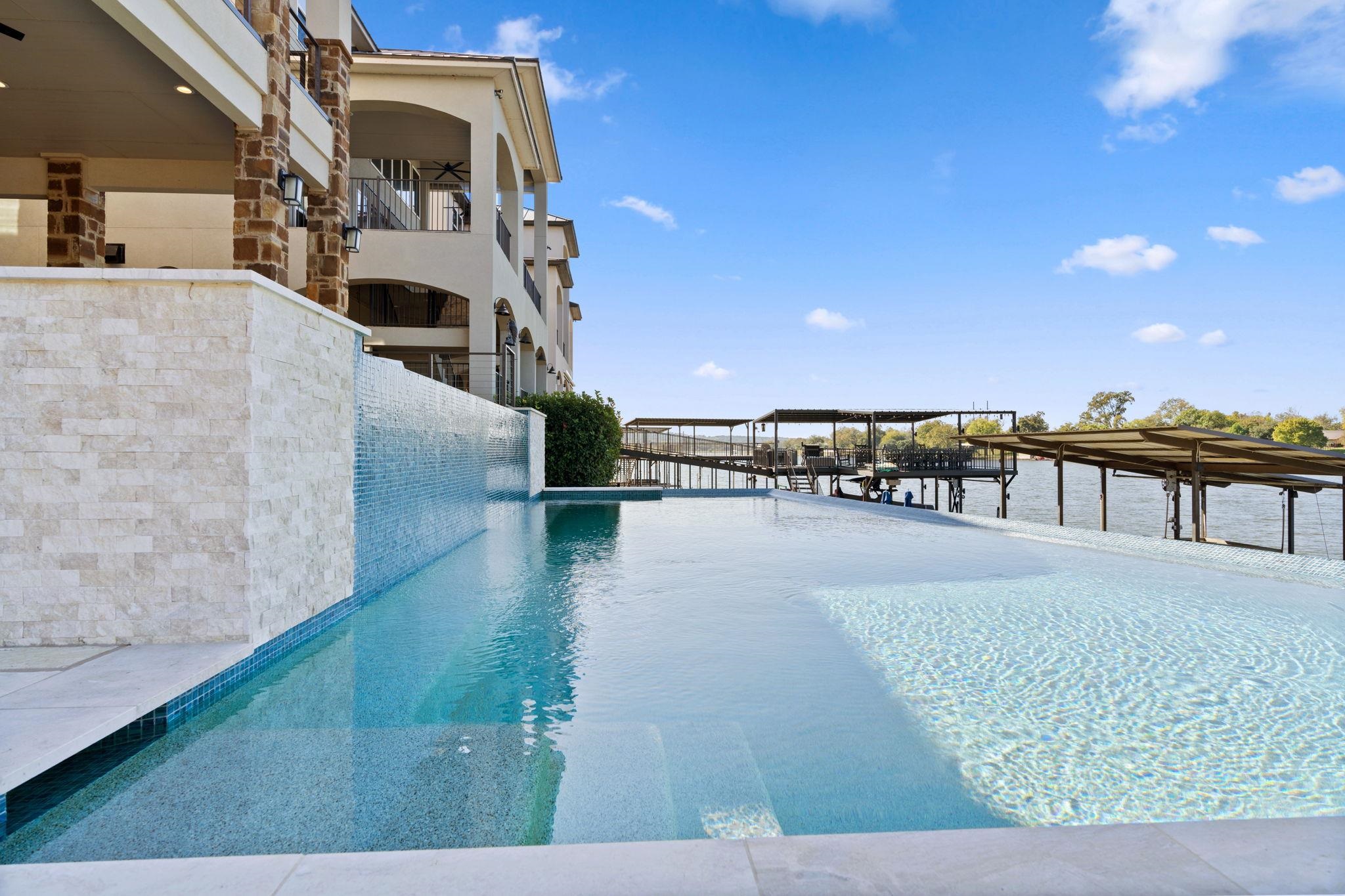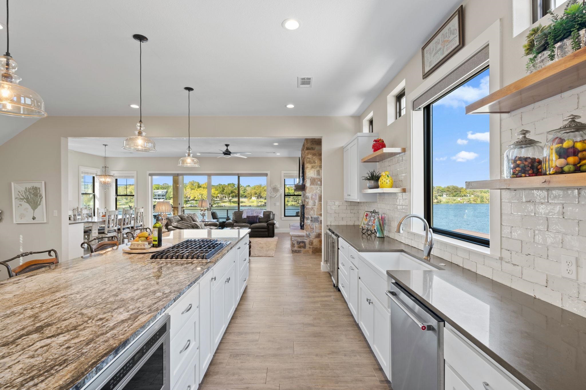 Luxury living in the gated Waterside community on Lake Marble Falls. Built in 2018 but lives like new, this home offers lake views from multiple decks, 4 bedrooms, 4 baths, a bonus room with wet bar, and a residential elevator connecting all levels. Enjoy a stunning heated two-level pool and hot tub with a spillover waterfall, plus a covered patio with fireplace and outdoor cooking. The private dock includes four hydraulic lifts for water toys. Interior highlights include MetroQuartz and granite surfaces, Lungarno smeared subway tile, a gas cooktop, fireplaces, and tankless water heaters. Move-in ready with furnishings available for purchase; watercraft—including boat and jet skis—also available separately. Minutes to Marble Falls and Horseshoe Bay—resort-style lake living at its best.