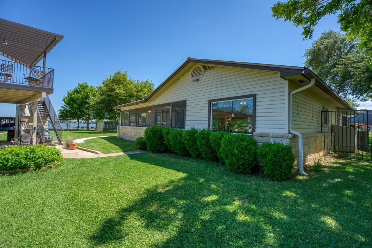Sensational Lake LBJ waterfront home in Sunrise Beach located in the acclaimed Texas Hill Country. Located on a sprawling lakeside property with approximately 1/2 acre lot with 152 feet of tranquil cove water, this home is perfect for a vacation or full-time property. The home has 3 bedrooms, 2 baths, approximately 2176 square feet. There is plenty of parking for large crowds with a 2 car attached carport and attached 3 car garage. The garage also has an air-conditioned storage area and a workshop area. The living room is large and accented with a fireplace with ventilator and built-in cabinets. The kitchen has an island, breakfast bar, Silestone countertops, and custom cabinets and has a view of the lake. The bedrooms are spacious and the bathrooms are both upgraded. One of the bedrooms is a 300 SF bunkroom/gameroom. When you step out of the living room into the screened porch you are greeted to a great lounging area and hot tub. The most impressive beauty of the property is when you step outside and experience all the lake has to offer. The 152 feet of waterfront is rare to find in Sunrise Beach, and coupled with the 1/2 acre, this property gives an owner many future options including room to add a pickleball court or pool. The dock is concrete and steel, with an above-dock patio to enjoy. There is also a PWC lift and plenty of lakeside sitting area. This protected cove is a suited to paddle board, swim, fish, and boat. The home has been upgraded multiple times including 2019.