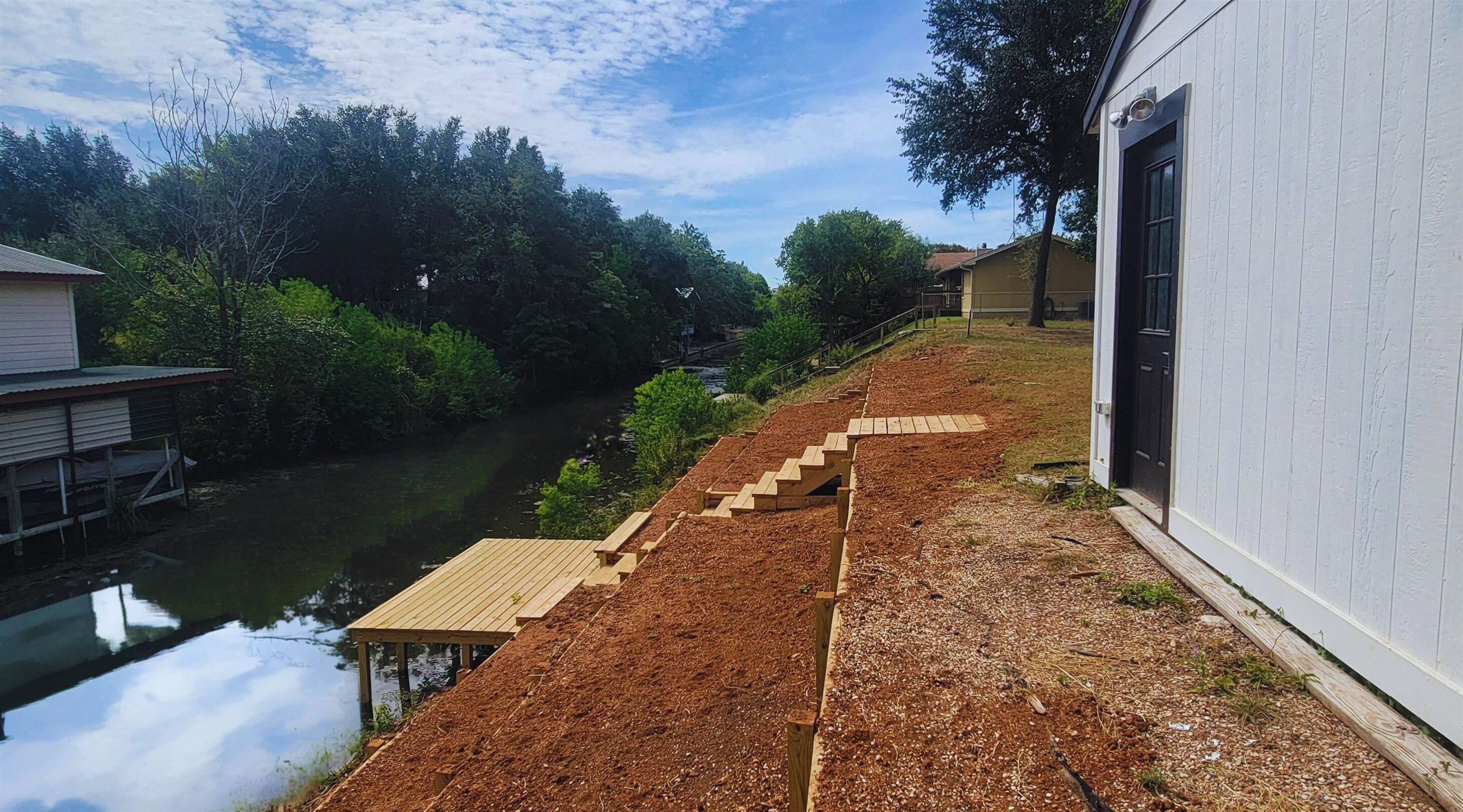 Welcome to 115 Channel Dr – Your Lake LBJ Retreat! Discover lakeside living at its best with this charming retreat offering 68 feet of waterfront on highly sought-after Lake LBJ. Thoughtfully designed and fully renovated, this 2-bedroom, 2-bathroom home blends comfort, style, and endless possibilities. Inside, you’ll find a spacious living room that flows into a beautifully updated kitchen featuring brand-new appliances, a breakfast bar, and plenty of space for entertaining. The primary suite offers a large walk-in closet, ensuite bath, and French doors opening directly onto the waterfront patio. The second bedroom is equally spacious with its own walk-in closet for ample storage. A detached single-car garage/workshop adds versatility — perfect for storing lake gear, creating a game room, or using as a hobby space. Outside, enjoy the freshly seeded yard, mature trees, a brand-new dock, and terraced waterfront for easy lake access.This unique channel property also includes an additional lot across the street, providing exciting opportunities for expansion, customization, or investment. The cleared lot next door is also available for purchase (an additional 68 feet of waterfront!) and may be negotiated as part of your offer. A very short distance from open water, this home delivers the perfect balance of privacy and accessibility. Completely furnished and move-in ready, this Lake LBJ gem is truly a must-see. Don’t just imagine the possibilities — come experience them.