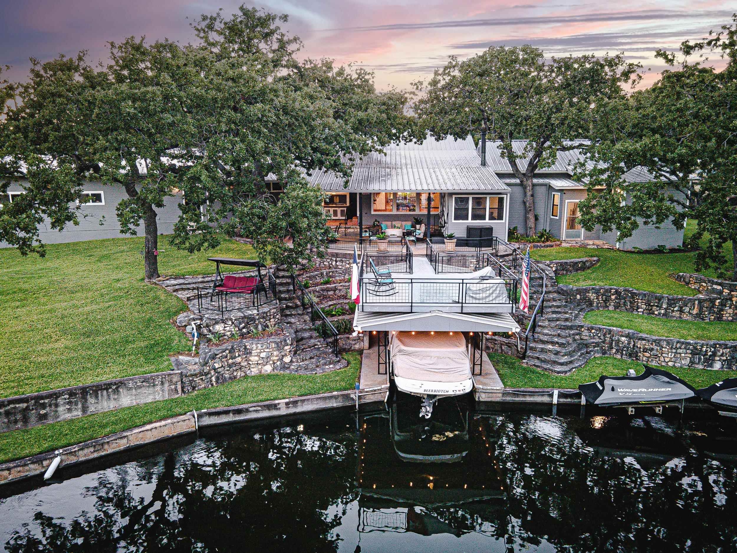 Granite Shoals waterfront gem! Short term rental allowed with city permit. This sprawling home sits on a double lot with 126 feet of waterfront. Beautifully updated three bedroom, three bathroom home with a private primary suite. Office with exterior entry. Open kitchen, butler's pantry, breakfast bar, formal dining facing water frontage. Beautifully tiered landscape, deck over boat dock, 7000 pound boat lift with boosted cables and motor, 5 car garage great for storing boat and jet ski trailers, great location very easy to access from Valley View Lane. This entire property has been meticulously maintained and had extensive upgrades including spray foam insulation, updated kitchen and bathrooms, atrium connecting main house to garages, extra half bath in garage, hot tub, beautiful outdoor living spaces, contact agent for full list of features and upgrades.