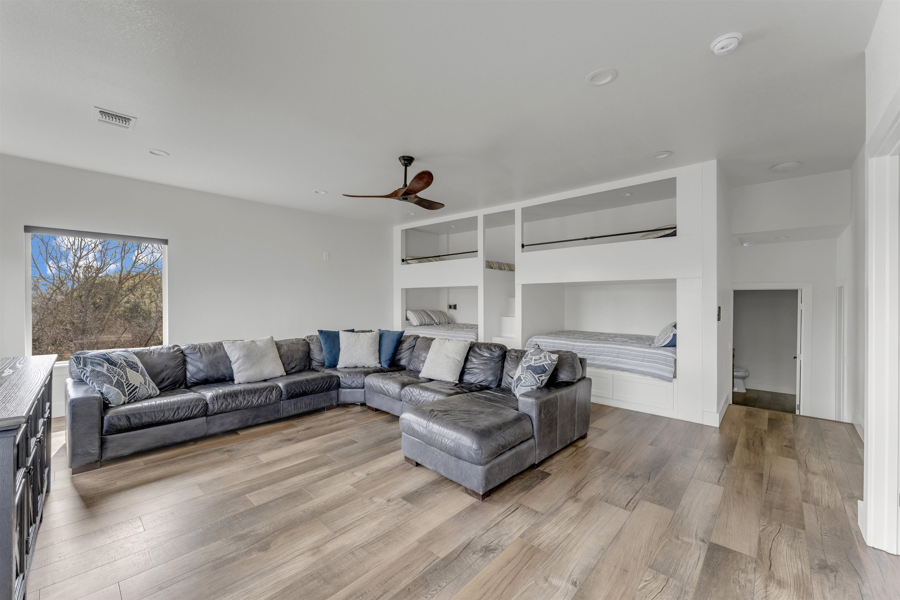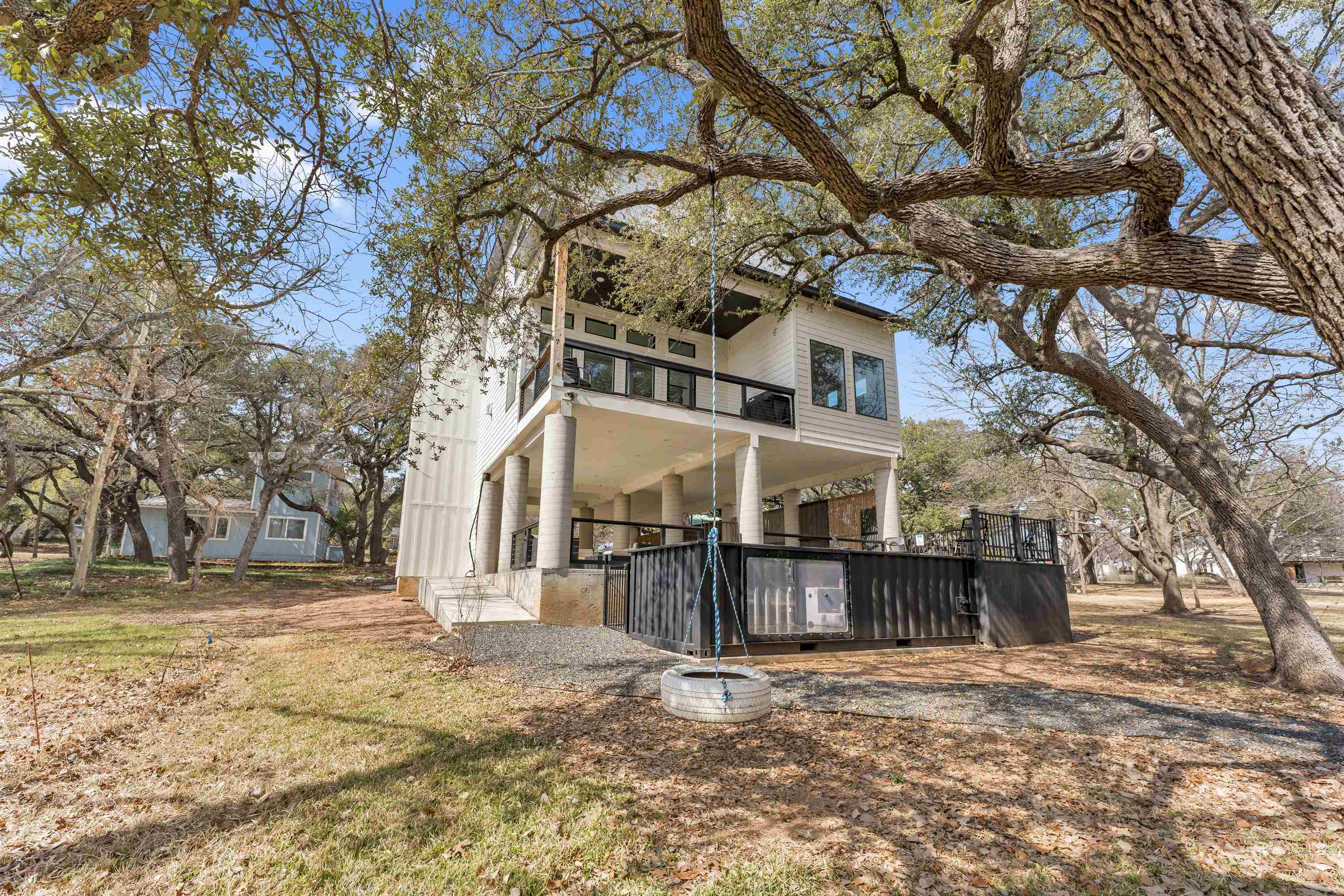 Exquisite Lake LBJ Waterfront Residence 321 Legion Loop, Kingsland Nestled along a tranquil channel of Lake LBJ just seconds from the Main Water, this sophisticated waterfront home delivers premium design, effortless comfort, and an elevated lake lifestyle. Featuring 4 bedrooms with ensuite baths and 2 half baths, this thoughtfully designed residence offers both privacy and convenience, including laundry rooms on both levels. The chef-inspired kitchen showcases a granite breakfast bar and flows seamlessly into the open living and dining areas, centered around a striking fireplace perfect for elegant entertaining or relaxed family gatherings. Expansive walls of windows on both levels flood the home with natural light while framing stunning lake views and breathtaking sunsets. Designed for recreation and retreat, the home includes a spacious game room with four built-in bunks, ideal for guests or short-term rental potential. Outdoors, enjoy a private lakeside oasis featuring an above-ground heated container pool with a stylish seating area, plus a private boat slip with lift and sun deck above for effortless lake access. A waterfront balcony provides the perfect setting for morning coffee or evening cocktails. An elevator/cargo lift offers seamless access to the main level. Whether envisioned as a luxurious primary residence, a second home getaway, or STR investment, this waterfront estate offers exceptional views, timeless sunsets, and endless days of lakefront living. **Bankruptcy Property, SOLD AS IS**
