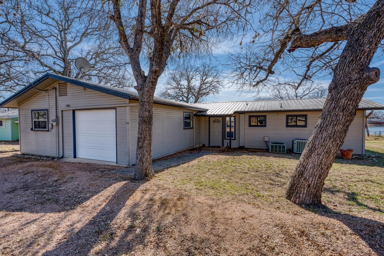 Lake Buchanan waterfront home located in Cassie subdivision. This home is located on 100 feet of cove waterfront with excellent lake and Texas Hill Country views. This home has so much potential. It currently has a 1 bedroom suite with a kitchenette, bath, walk in closet and bathroom. It opens to a screened in patio to peacefully enjoy the views on the lake. The main full size kitchen with a combination dining and living area is down the hall. That room opens to a large second living area that could also be used as a large bunkroom/game room combination. There is a second bathroom by the kitchen area. As you venture through the home there is a hallway that leads to a single garage and a workshop/storage area. The workshop is heated and cooled and could easily convert to another bedroom. The garage currently has a pool table but could be reconfigured with the workshop space to make another bedroom suite. Options galore. Outside is a combination detached 2 car garage with additional storage area. The lakeside has a concrete porch in addition to the screened porch. There is another concrete patio that makes a great area for grilling. Next is a playscape and then the beautiful water of Lake Buchanan. So many possibilities to make this your own lake getaway. Great place to paddleboard, swim or kayak. Use the Cassie park to launch your boat and personal watercraft and pull up to your own shoreline!