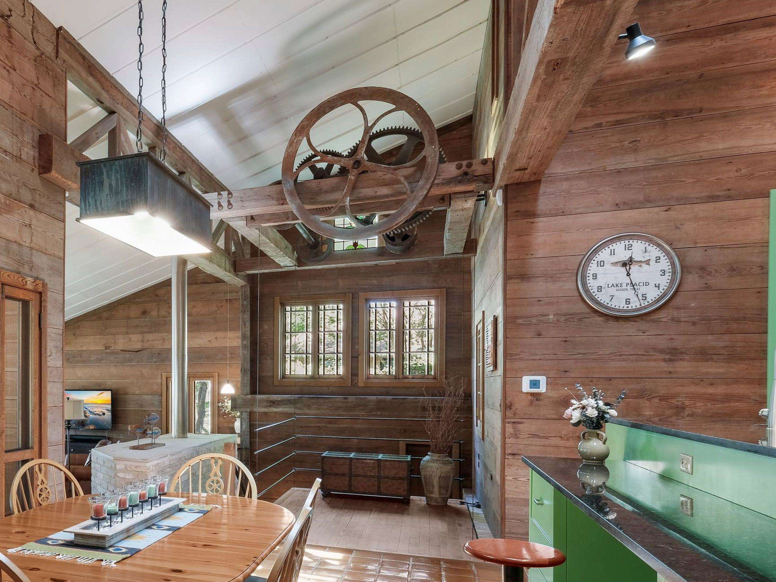 Lake Placid is set to reach full pool by the end of April 2026 — and this waterfront retreat is ready to capitalize. Prime shoreline with a covered boat lift, dual jet ski lifts, and a lit flagstone path leading straight to the water. When the lake rises, you launch. It’s that simple. Outdoor living is built for lake season: an expansive covered deck with ceiling fans and ambient lighting, plus a trellis-covered grilling patio wrapped in honeysuckle for shaded afternoons and sunset dinners. Inside, vaulted ceilings with exposed beams and a wood-burning stove create warmth and character. Large windows frame Lake Placid views and flood the home with natural light. The kitchen stands out with a massive granite island, Bosch appliances, custom cabinetry, and built-in breakfast seating designed for gathering. A vintage hand-cranked freight elevator adds personality and function between levels. The lower flex space adapts easily for guests, recreation, or conditioned storage. The primary suite captures lake views and includes loft bonus space plus two en suites—one with a soaking tub, the other with an oversized walk-in shower featuring dual heads and a rain feature. Wrought-iron fencing, mature trees, sprinkler system, underground drainage, two-story storage with climate-controlled upper level, covered parking, extra pad space, outdoor shower, and gated neighborhood boat ramp access complete the package. Lake Placid is rising. Be ready when it does