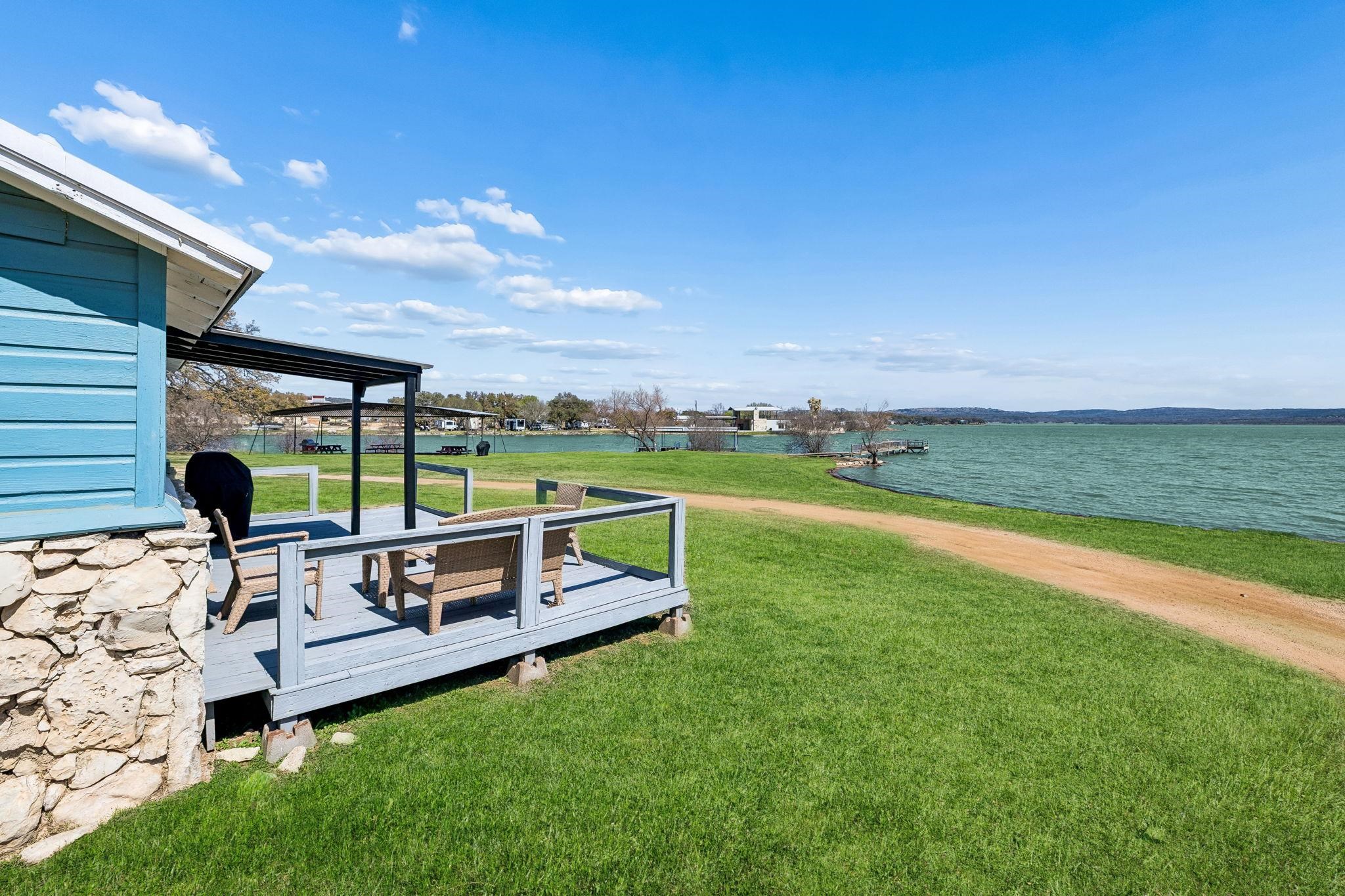 Driftwood Shores Resort spans 2.73 acres on Lake Buchanan with an incredible 875’ of waterfront—your chance to own a proven lakefront resort with massive potential. The property includes 8 fully equipped cottages, 2 homes, a front office, a leased post office, a lakeside party barn, multiple storage buildings, and a long list of amenities designed for easy lake living and income production. The waterfront delivers big: covered boat slips, a concrete boat ramp, natural shoreline with concrete steps into Lake Buchanan, plus a private fishing pier and a picnic pavilion just steps from the water. It’s the ideal setup for guests, anglers, and lake lovers alike. The party barn offers HVAC, a kitchenette, concrete floors, and an attached carport—perfect for events or gear storage. Additional storage buildings include a workshop, supply shed, tractor barn, and garden shed, giving the property the operational backbone of a true lakefront resort. Each cottage features its own grill, parking, AC, kitchen setup, and unique layout, offering flexible accommodations for short-term rentals, long-term guests, or a full resort operation. With no city zoning or regulations, abundant parking, two lakeside firepit areas, and wide-open lake views, Driftwood Shores Resort is a rare opportunity to own, operate, reimagine, or redevelop a multifaceted waterfront property on one of Texas’ beloved lakes.
