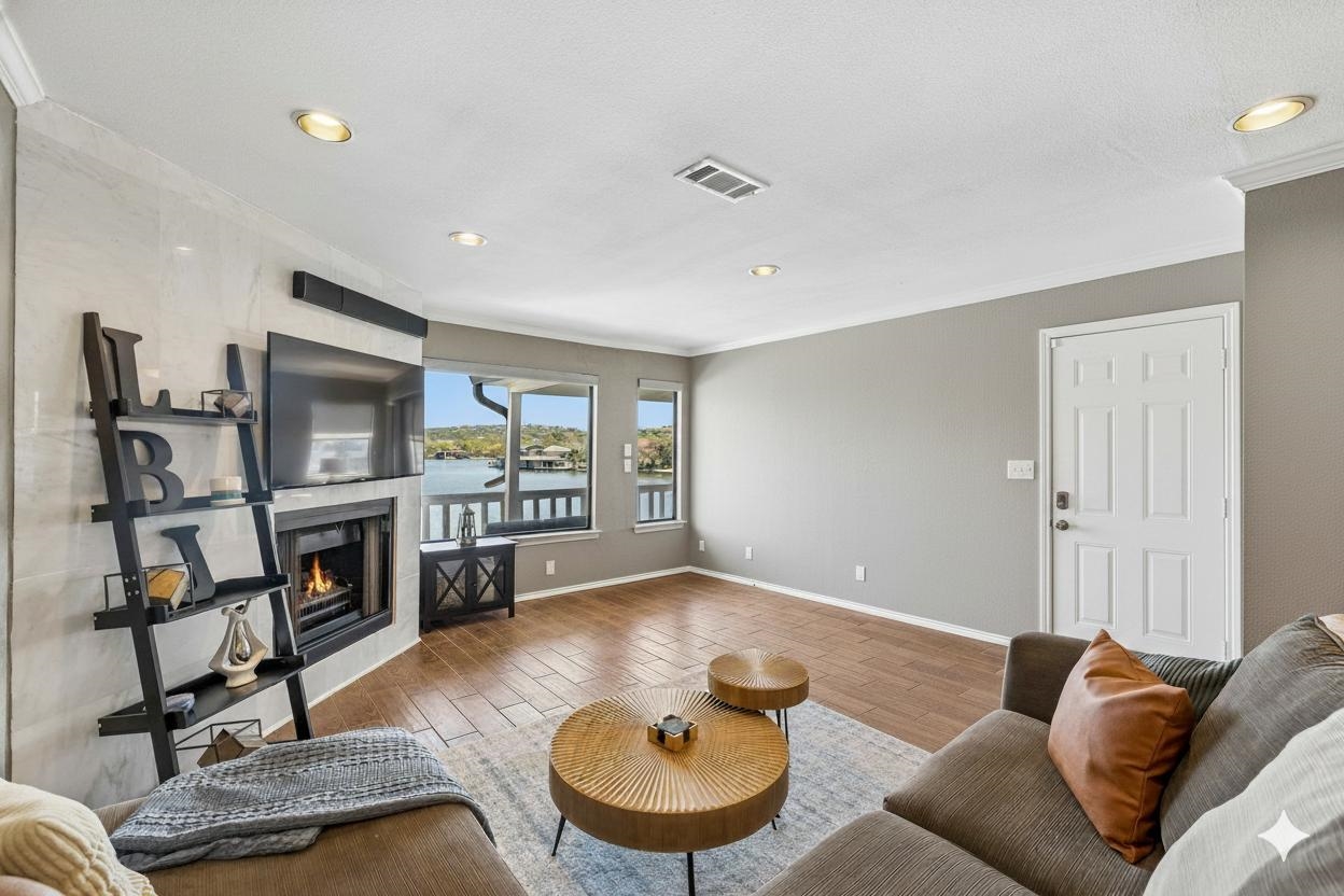 Open water views on Lake LBJ in the exclusive gated community of Island Village. This recently remodeled 1,174 sq. ft. waterfront condo in Horseshoe Bay delivers the kind of low-maintenance lake lifestyle that works as both a weekend retreat and a full-time residence. The interior has been updated for modern comfort and style, while the main living space keeps the focus where it belongs—on the water. It’s a clean, easy setup for buyers who want lakefront access without the upkeep of a larger property. Community amenities add even more value. The private pool is just steps from the condo, and lake access includes allotted PWC space, availability for a day slip, and a fishing dock. A 1-car detached garage provides practical storage and convenience. This location is hard to beat. The condo is within walking distance of the Yacht Club, Horseshoe Bay Resort Spa, and Horseshoe Bay Resort, giving you quick access to luxury amenities. You’re also close to restaurants, shopping, five championship private golf courses, five public golf courses, and the Texas Wine Country destination of Fredericksburg. Because it’s Lake LBJ, you also get the advantage of constant water levels and year-round water enjoyment. Waterfront views, gated privacy, recent remodel, and resort-area convenience—all in one of Horseshoe Bay’s most desirable lakefront settings.