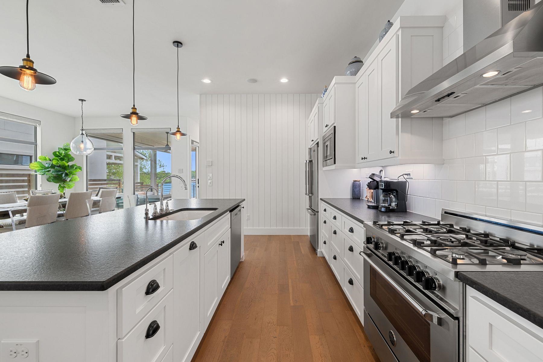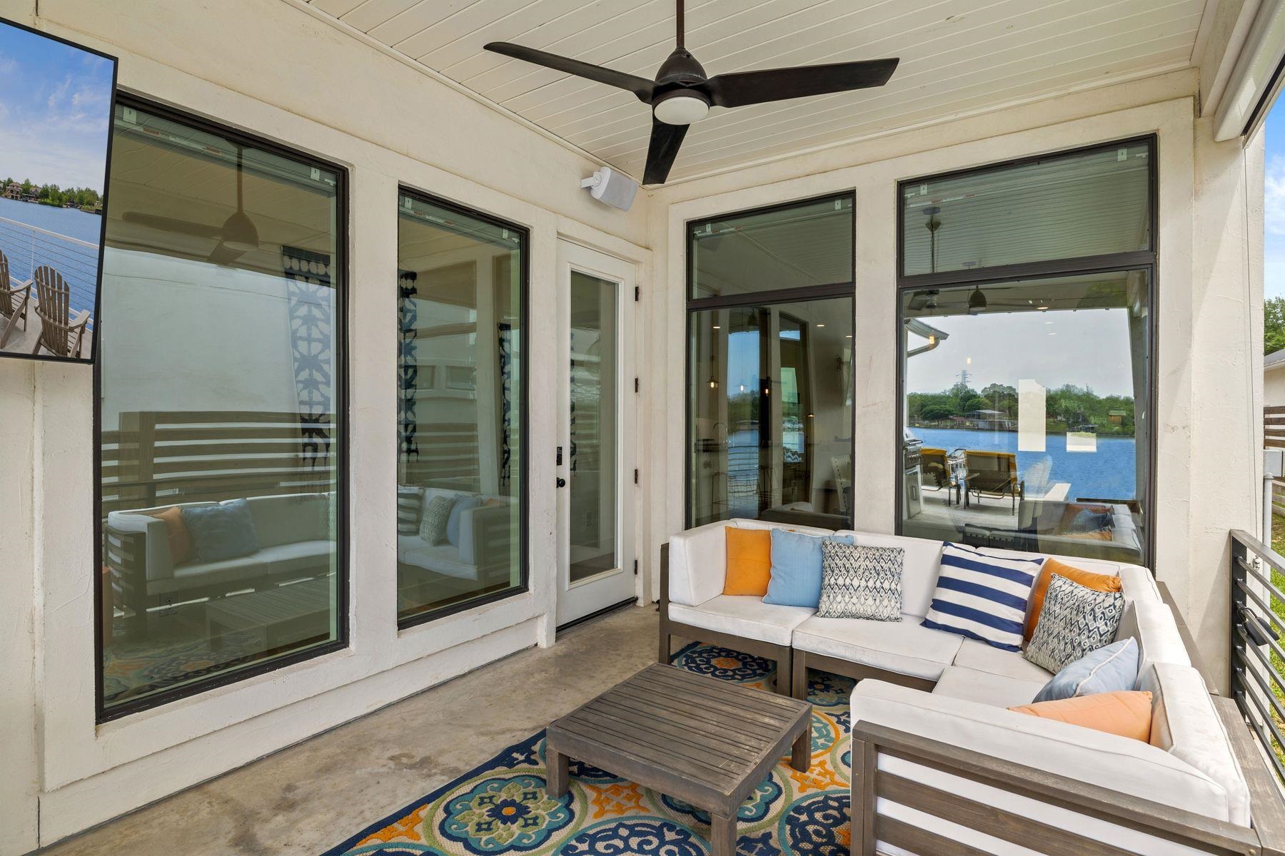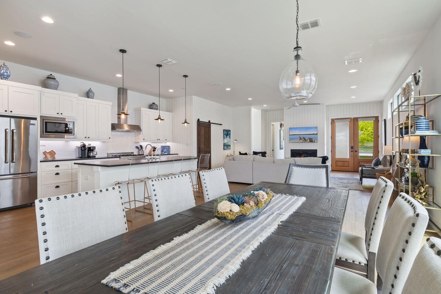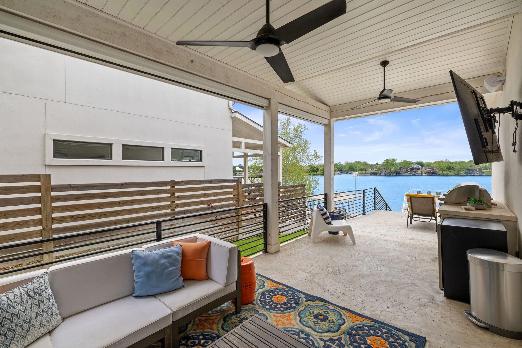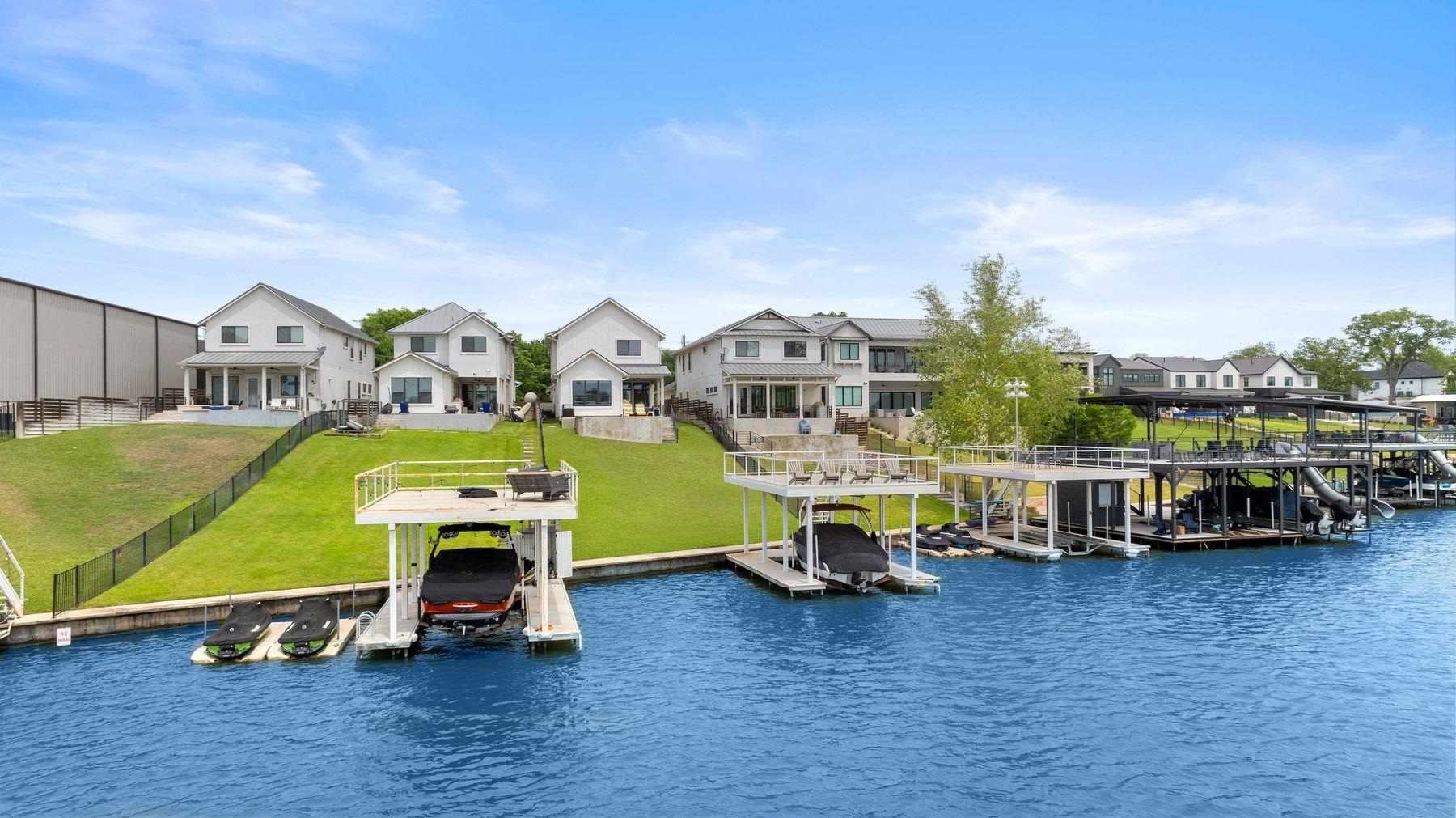 Premier Lakefront Modern Farmhouse at 1324 Euel Moore Dr, Kingsland, TX This beautiful lake house was built in 2018 by premier builder Keith Wing Custom Builders, this fantastic 3,453 sq ft modern farmhouse is a stunning masterpiece on the 53' open waterfront of Lake LBJ in Kingsland, TX. Everything about this 4-bedroom, 4.5-bath property is outstanding, offering the perfect blend of luxury, location. Step inside to discover a bright, open-concept design with stylish high-end details, from sleek accents to beautiful hardwood flooring. The gourmet kitchen, an entertainer’s dream, boasts premium appliances, quartz countertops, and a large island, flowing seamlessly into the living area with panoramic lake views. The primary suite is a serene retreat with a spa-like en-suite, while three additional bedrooms, each with private baths, provide ample space for family or guests. A vibrant game room with built in bunks adds fun for all ages. Outside, the Lake LBJ lifestyle shines with a custom pool, outdoor kitchen, and expansive living space perfect for weekend retreats or short-term vacation rentals, offering a proven income model. The close proximity to Boat Town with their restaurant and fun activities adds to the vacation experience and ease of enjoyment. The boathouse, complete with an upper deck entertaining area, invites boating, fishing, or jet skiing on the lake’s open waters. Stunning east-facing views capture vibrant sunrises.