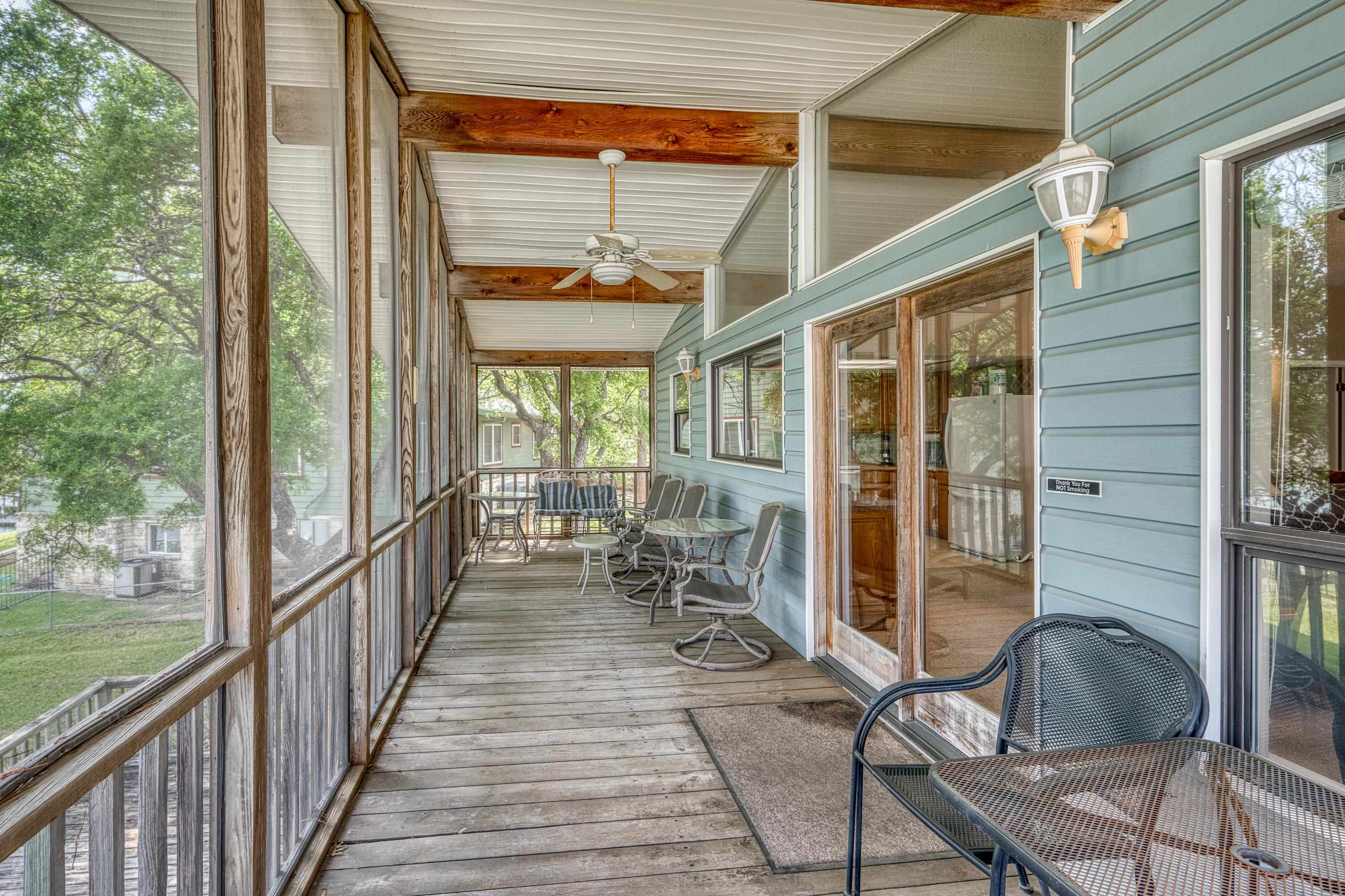 Wake up to wide-open views and calm water at this charming waterfront lake house in Sunrise Beach Village on Lake LBJ, where one of the area’s most loved coves gives families the best of both worlds: quiet water for swimming and paddle-boarding, plus an open-water view that stretches far beyond the shoreline. With 75' of southeast-facing frontage, the property enjoys soft morning sun, steady breezes, and a setting that keeps people outside from sunrise to sunset. The 1,976 sf home offers 4 bedrooms and 3 bathrooms, full of classic lake-house charm and ready for the next chapter. Update the existing home, enjoy it as it is, or use the lot as the starting point for a future custom build in a location where the water and view carry lasting value. A screened-in porch overlooks the lake and becomes the natural gathering place after long days on the water. Outside, the large .299-acre yard offers room for a pool, expanded entertaining space, or simply plenty of room for kids to play. The private boat dock includes two boat slips, making lake access easy and immediate. For buyers looking for quality waterfront under $1.3M, this property stands out for its setting, its charm, and its long-term potential. No short-term rentals allowed, preserving the quiet residential feel that makes this cove so desirable.