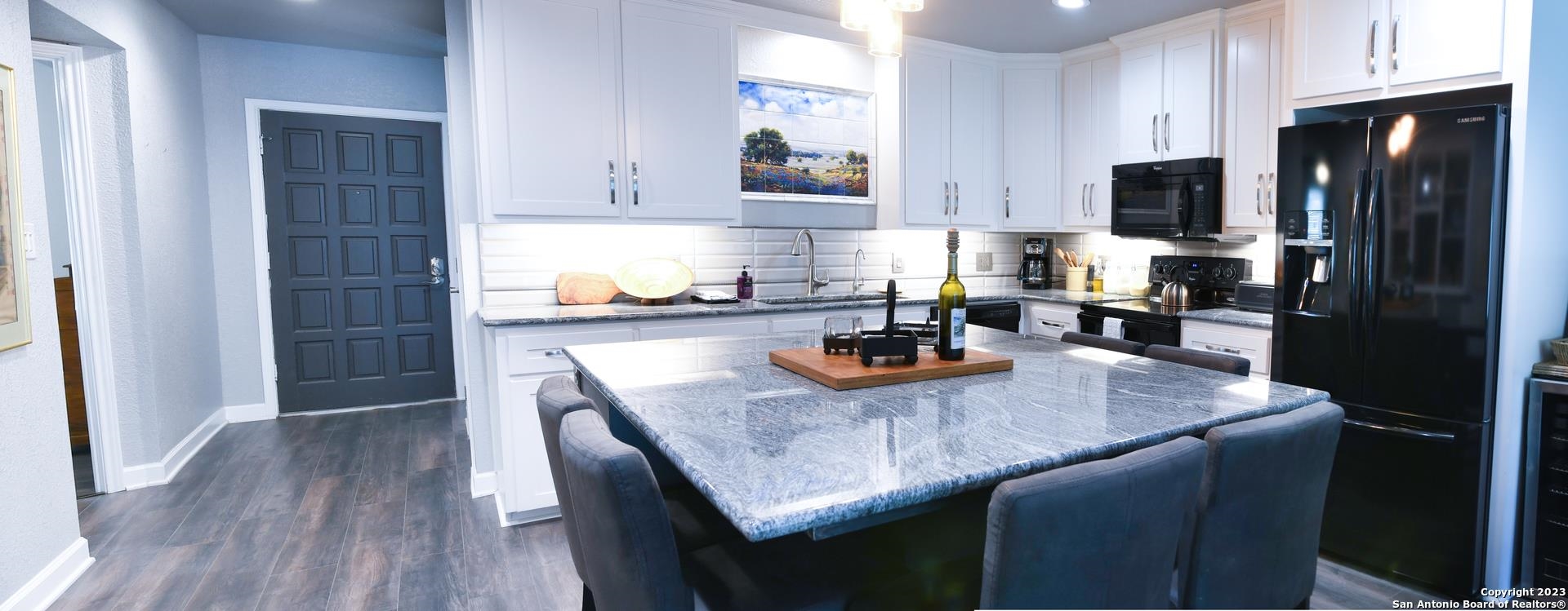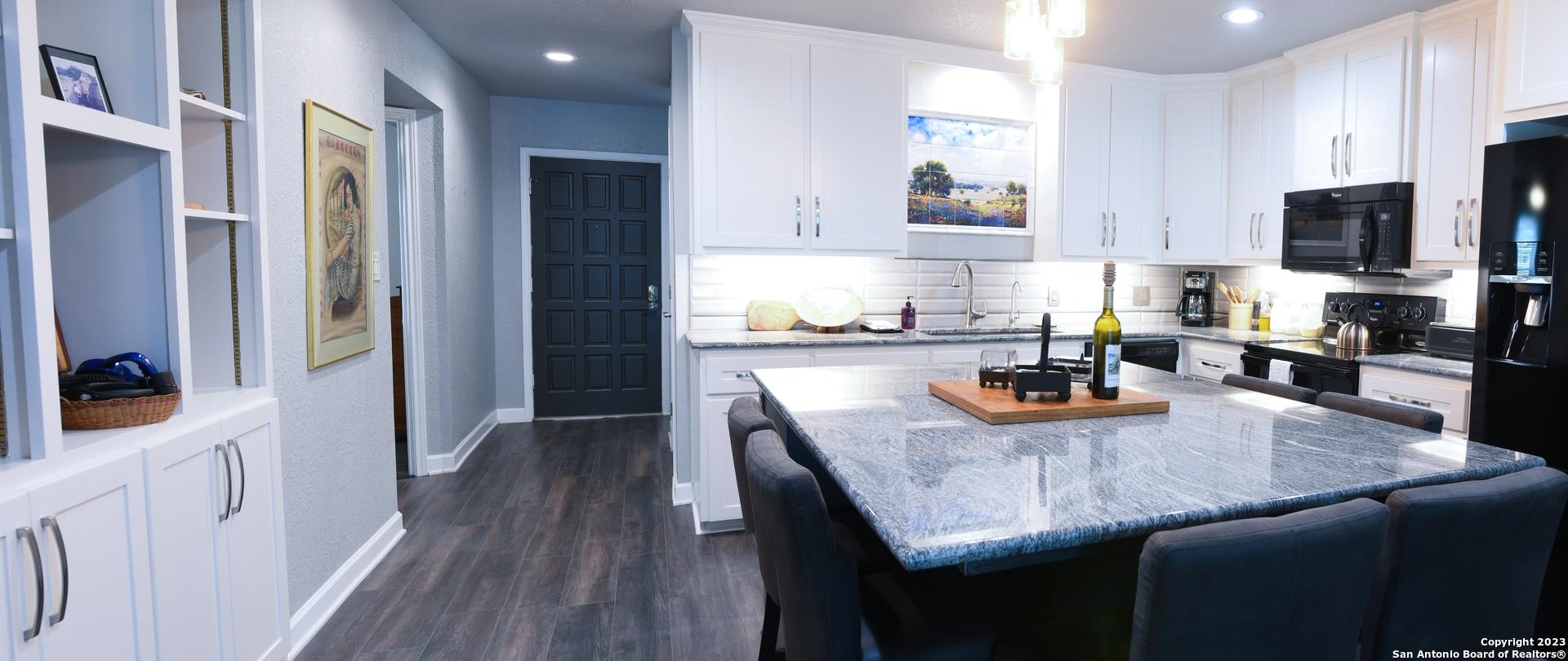 Welcome to Lake Front Homes on Lake LBJ! This beautiful, fully updated ground floor unit boasts 2 bedrooms, 2 bathrooms, an office/flex space, laundry/mud room, open kitchen with a breakfast bar, and an open dining and living space. There is a reverse osmosis water system and a water softener installed. 2 sets of doors open to a lovely balcony and the spiral staircase leads directly below to an additional storage space for kayaks, lake toys, fishing gear and tools. Across the lawn, you'll find the refreshing pool as well as the dock and marina. As you enter the marina, you'll see the first 2 spots on the left are your dedicated jet ski ramp and boat slip/electric lift. This is a rare setup to have both spots directly next to each other. There is also a wonderful smoker and grilling area for community use. This unit is completely move in ready and is being sold fully furnished minus a couple of items. All appliances convey including brand new washer and dryer. This is an amazing turn key opportunity to snag a slice of highly coveted LBJ waterfront and start living your best lake life. This boutique condo community is a rare gem and the set up can't be beat! *Did not flood in 2018.